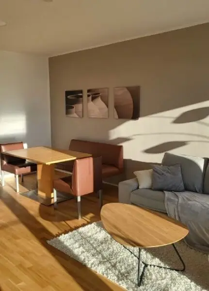 Das Apartment verfügt über einen hochwertigen Parkettboden in den Wohn- und Schlafräumen und zeitlose Fließen in den Nassräumen.