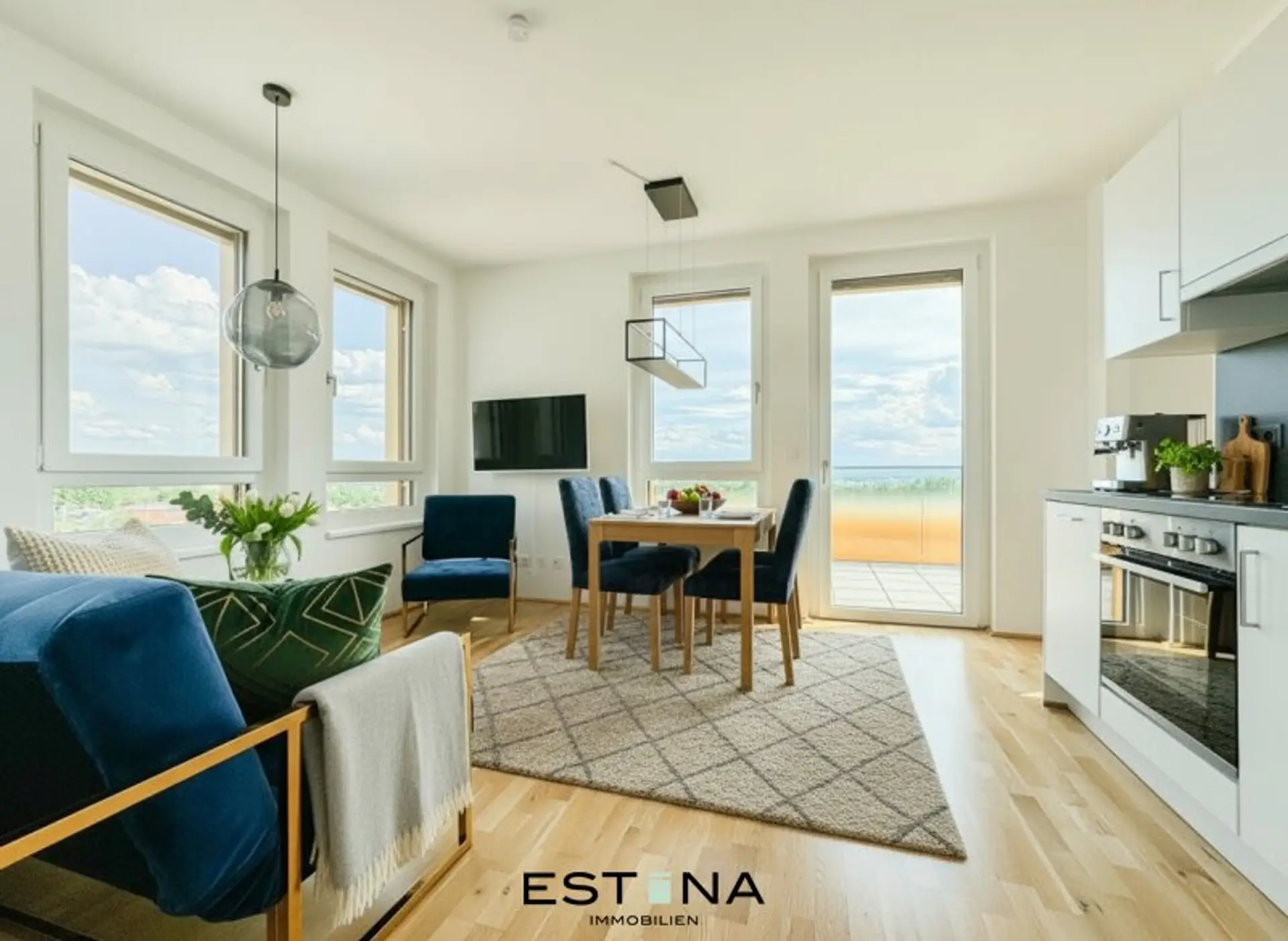 Die Wohnung verfügt über eine traumhaften Balkon, eine moderne Küche und ein stilvolles Badezimmer. Die großen Fensterflächen lassen das Tageslicht hereinströmen und bieten einen atemberaubenden Blick auf die Umgebung. Die energieeffiziente Bauteilaktivierung sorgt für eine angenehme Temperierung der Wohnung sowohl im Winter als auch Sommer.