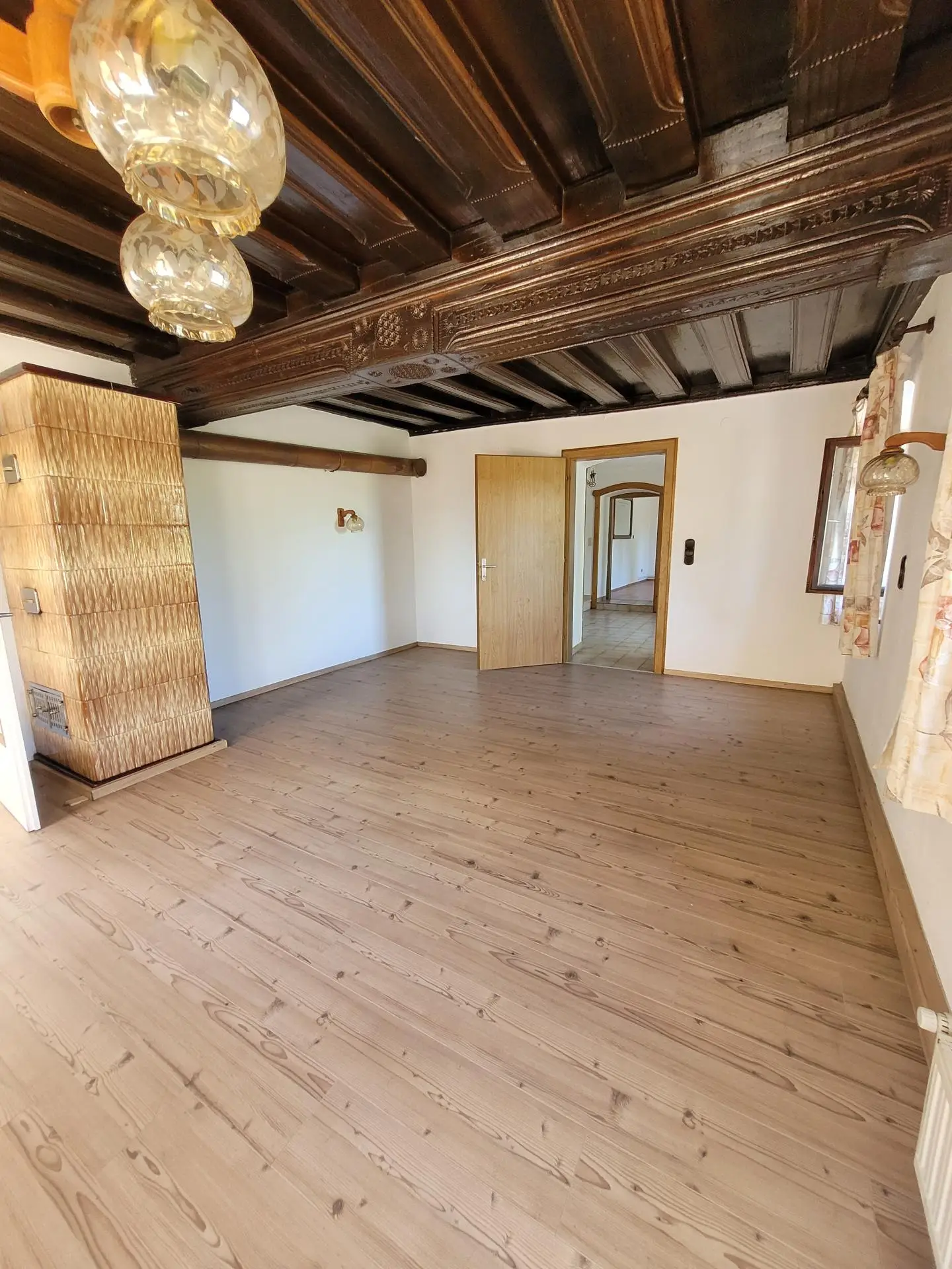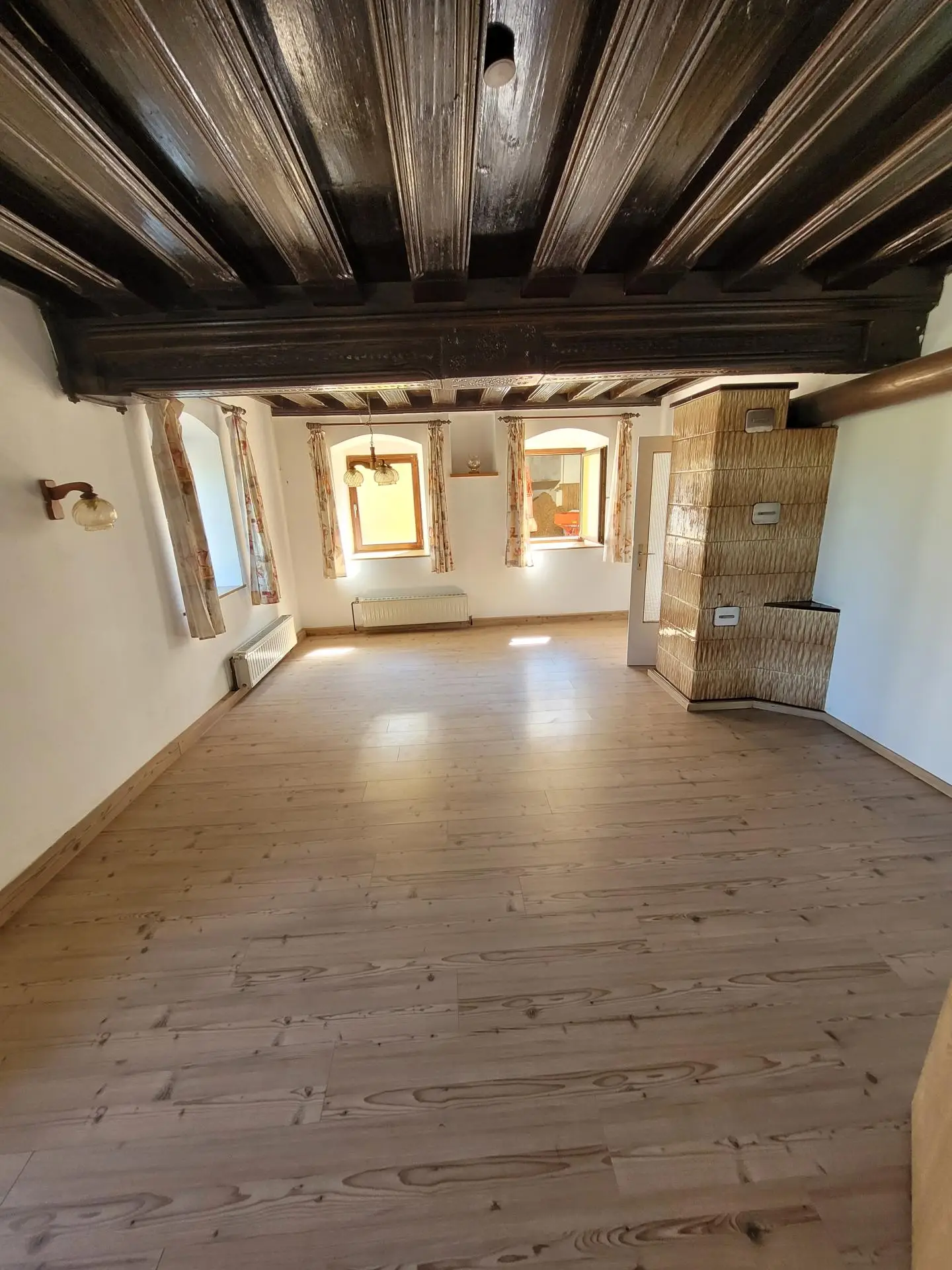 Besonders hervorzuheben ist die historische Holztramdecke in der gemütlichen Stube – ein architektonisches Schmuckstück, das die lange Geschichte des Hauses, die sich bis ins Jahr 1750 zurückverfolgen lässt, eindrucksvoll widerspiegelt. Die großzügige Wohnküche mit traditionellem Holzofen lädt zum Kochen, Genießen und Beisammensein ein.