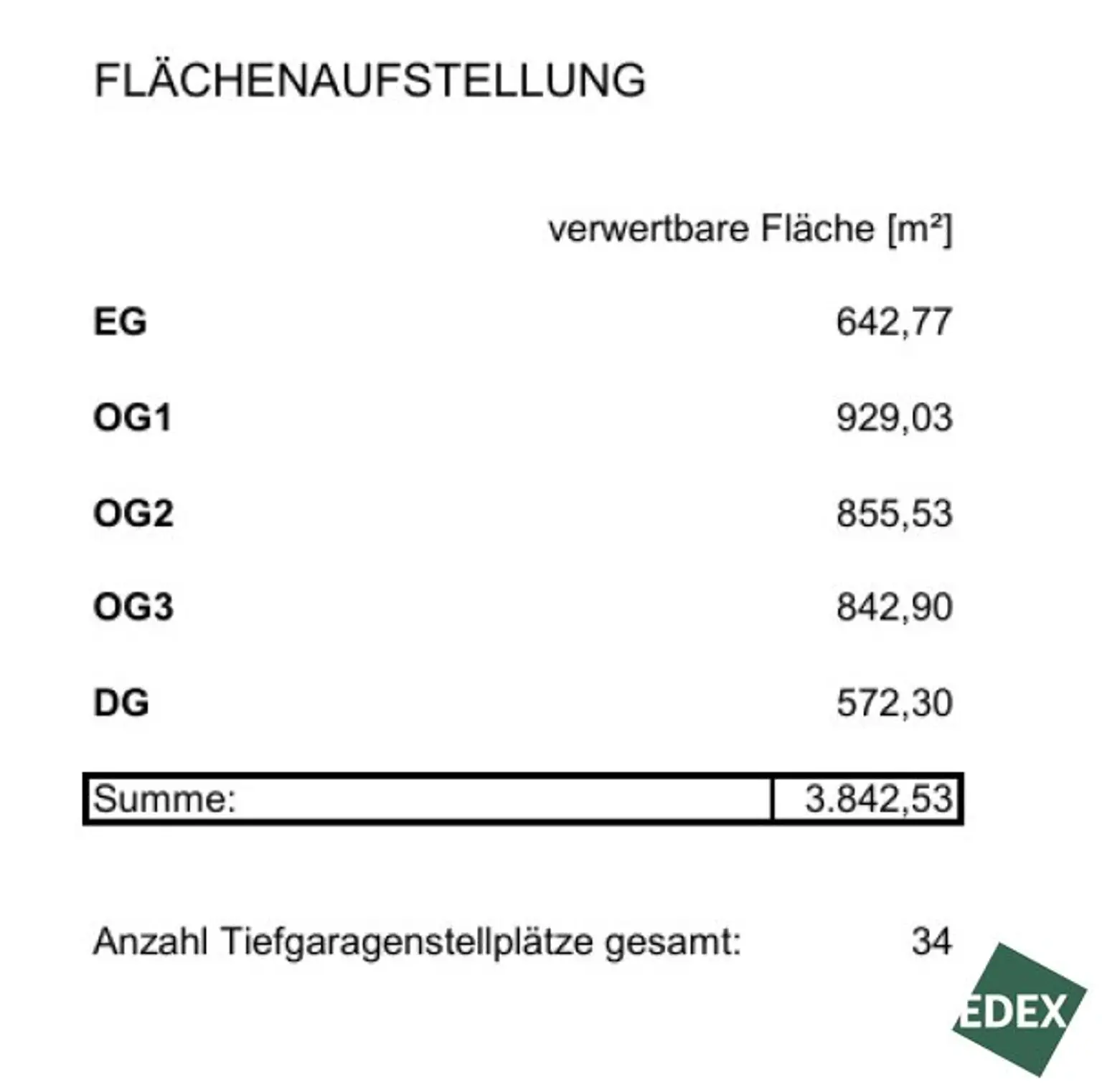 Zudem können bis zu 34 Tiefgaragenstellplätze sowie insgesamt ca. 183,39 m² im UG realisiert werden.
