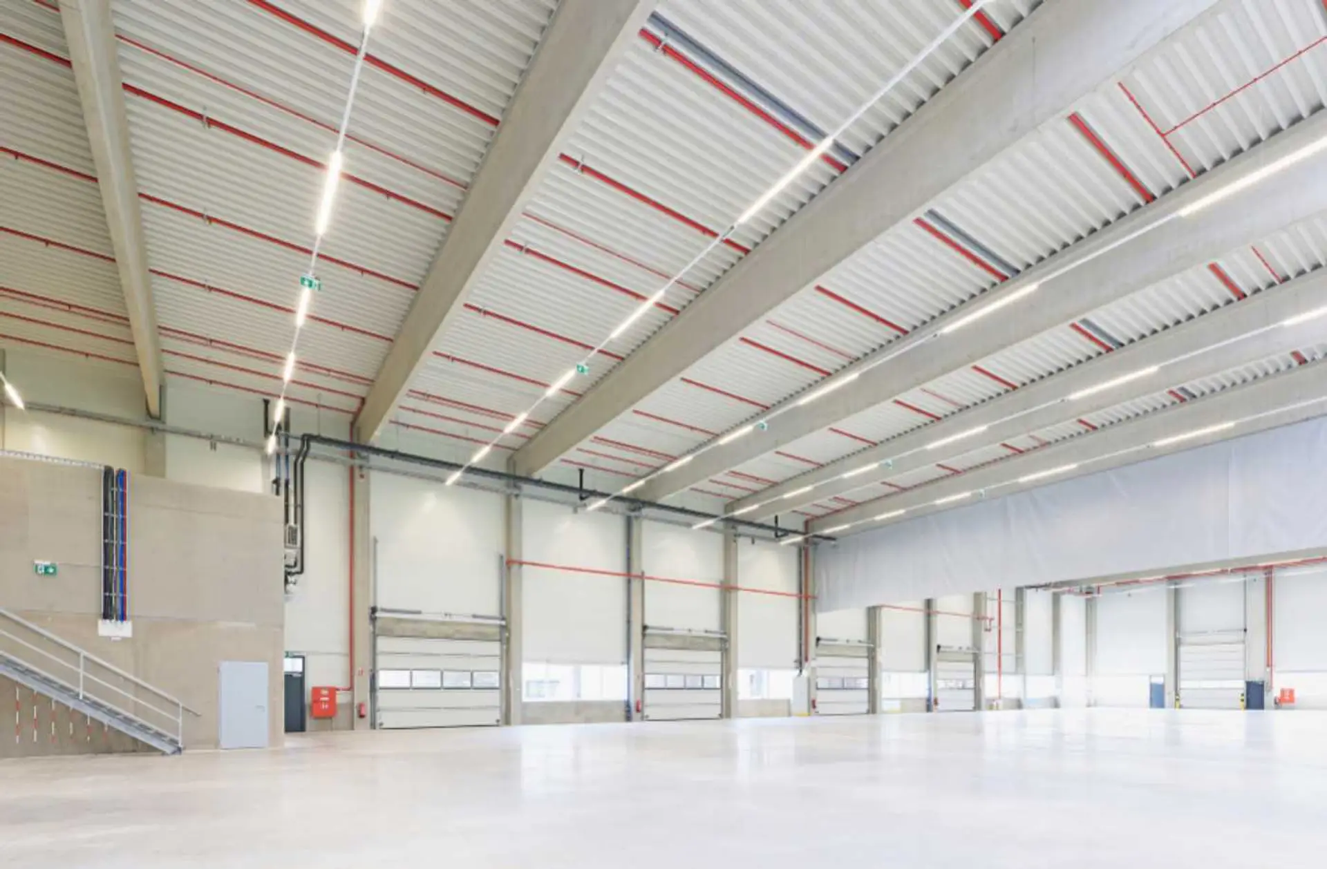 In jeder Halleneinheit ist ein Büro-/Sanitärblock in Leichtbauweise integriert, darüber befindet sich eine Galerie zur Nutzung als zusätzliche Lagerfläche. Die Halle ist eingeschossig konzipiert und wird mit einer Photovoltaikanlage auf dem Dach ausgestattet.