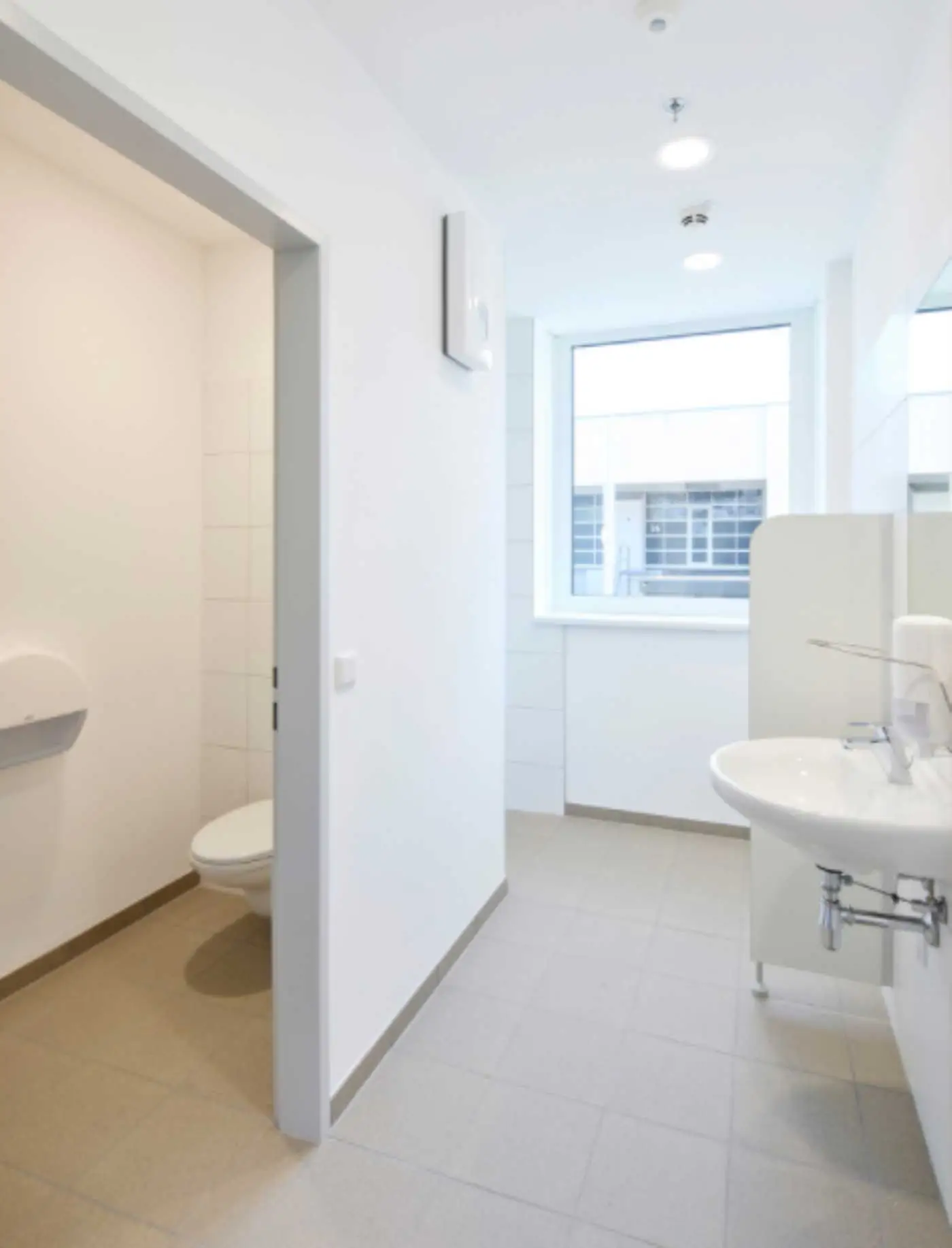 Die Büroflächen im 1. und 2. Obergeschoss sind bereits ausgebaut, eine Mitbenutzung der Allgemeinbereiche wie der Teeküche ist möglich.