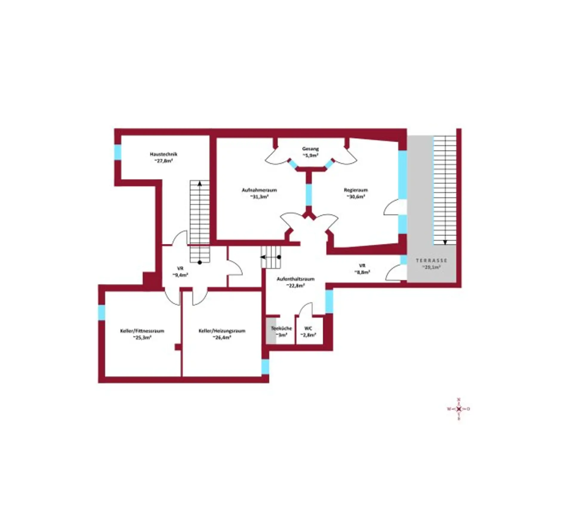 Ein weiteres absolutes Highlight ist das professionell ausgestattete Tonstudio mit separatem Eingang (ca. 105 m²). Dieses umfasst den Regieraum, den Aufnahmebereich, den Gesangsraum, sowie eine kleine Küche und Sanitäranlagen. Durch den repräsentativen Eingang eignet sich das Studio nicht nur für private kreative Projekte, sondern auch hervorragend zur externen Vermietung oder gewerblichen Nutzung. Optional könnte man auch ein HOME-CINEMA einrichten.