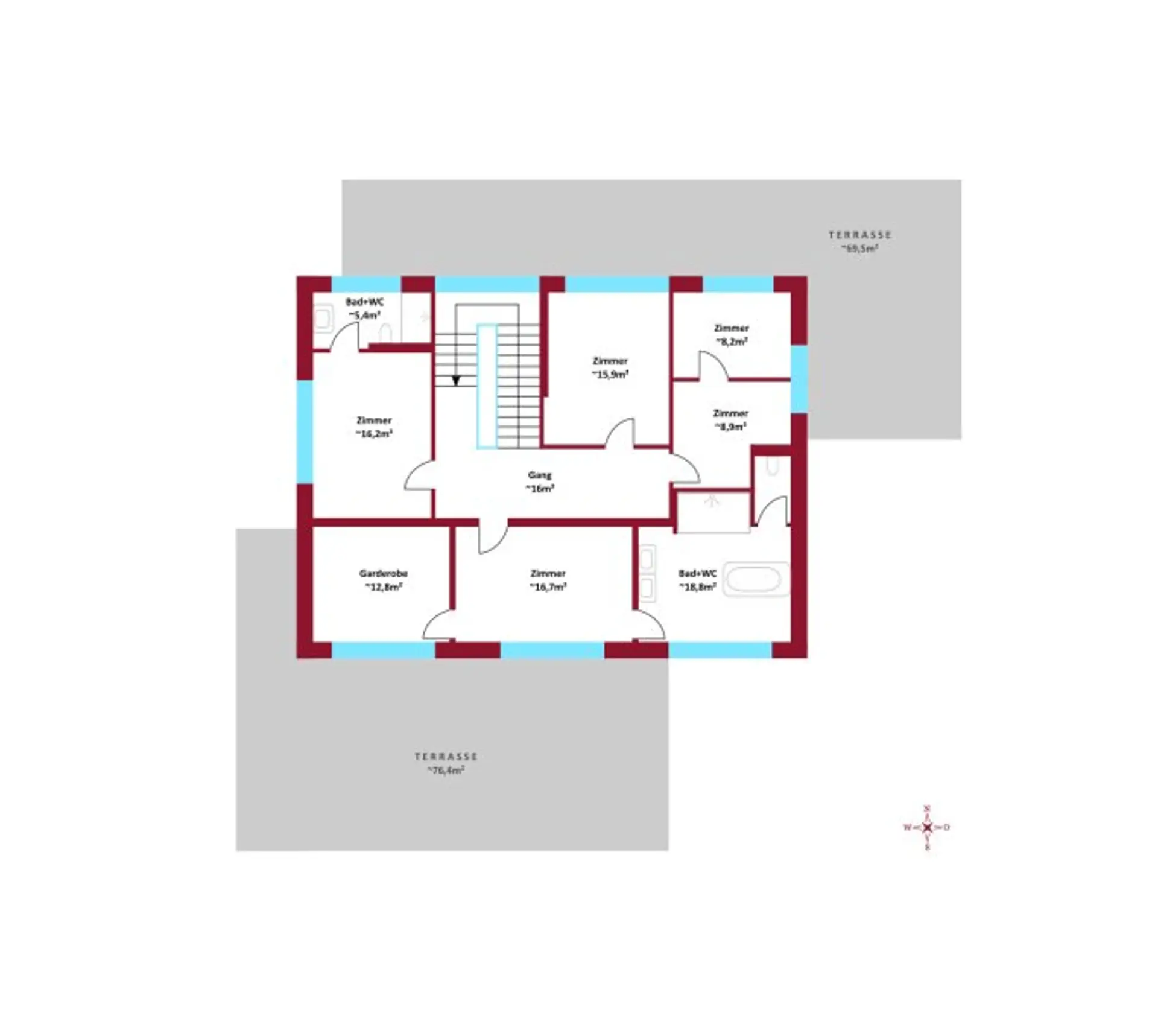 Kellergeschoss (Teilfläche mit ca. 89 m²) – Raum für Technik, Fitness & Kreativität: Das Kellergeschoss bietet weit mehr als nur klassische Lagerflächen. Neben einem Technik- und Heizungsraum steht Ihnen ein Raum als z.B. eigener Fitnessbereich zur Verfügung – ideal für Ihr persönliches Training in den eigenen vier Wänden.