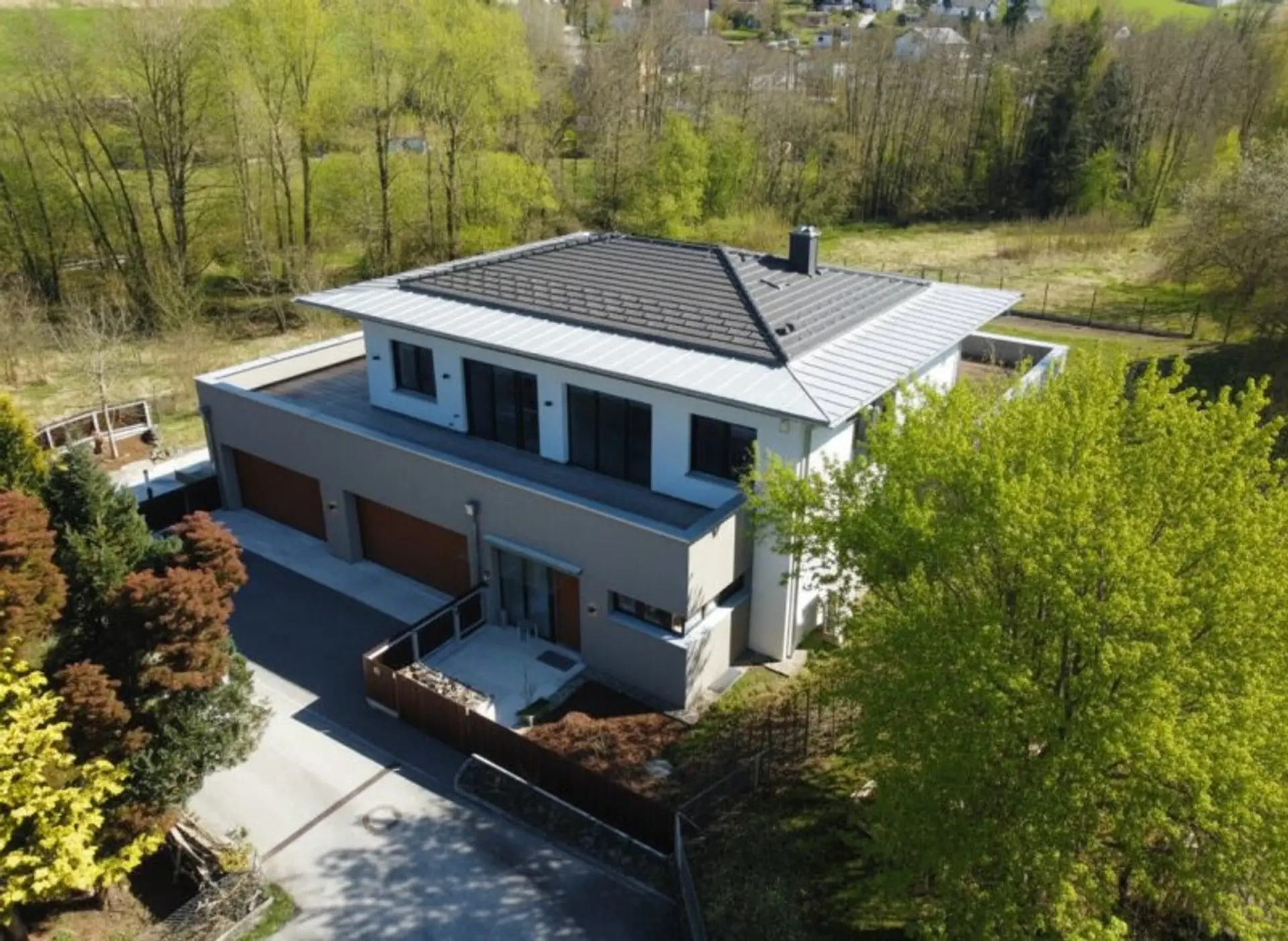 Auf diesem großzügigen Grundstück von rund 919 m² (Bauland), ergänzt durch beeindruckende 6.252 m² idyllisches Grünland, entfaltet sich ein privates Paradies, das Raum zum Durchatmen, Träumen und Gestalten bietet. Diese außergewöhnliche Villa lässt keine Wünsche offen - vom freundlichen Wohnbereich in Südwestlage mit der Möglichkeit einer Wohnraumerweiterung (z. B. durch einen Wintergarten) bis zu einem besonderen Außenbereich mit Pool - für entspannte Sonnenstunden, lange Sommerabende mit Freunden oder einfach beim Kaffee mit Blick ins Grüne.