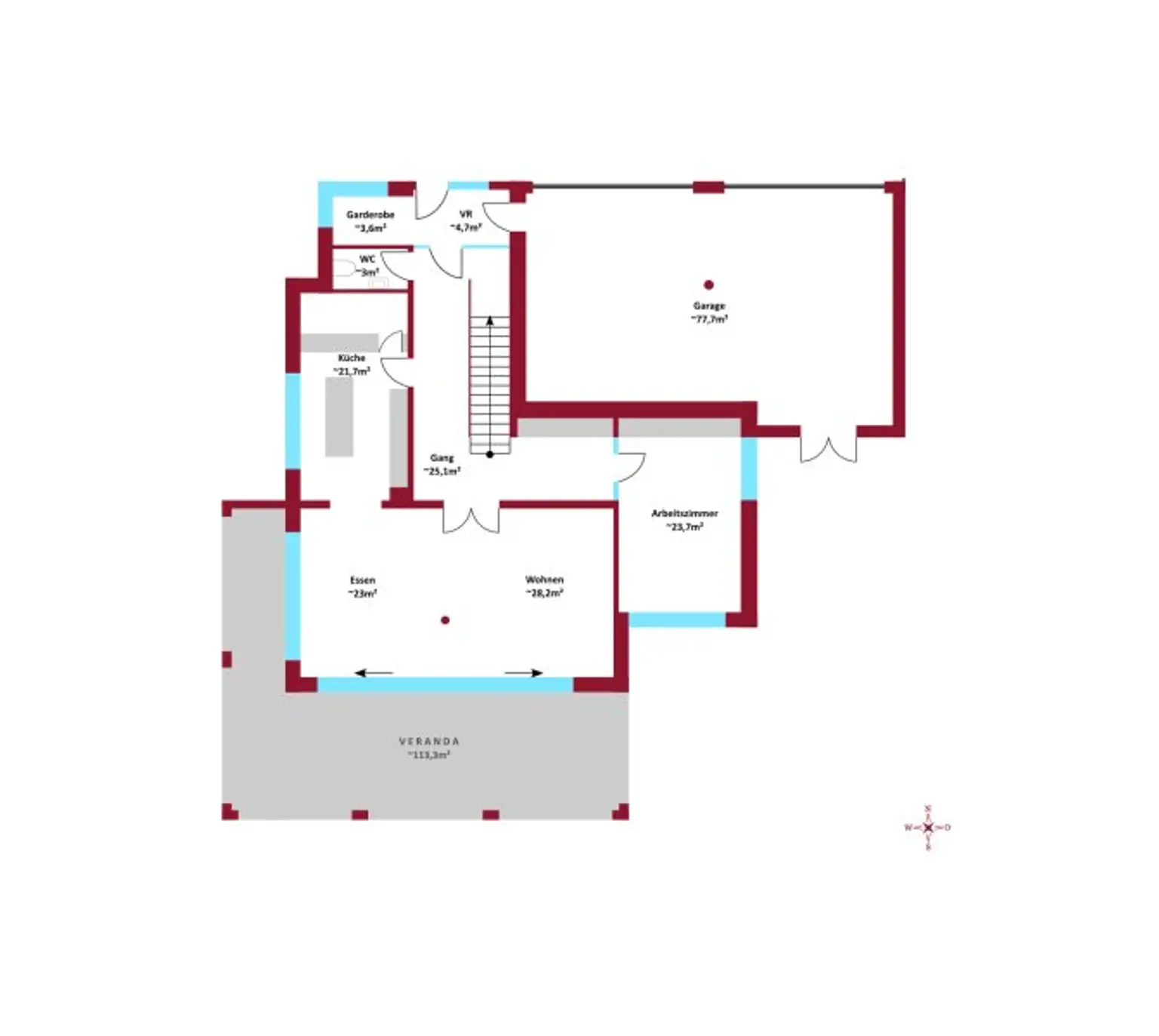 Die Wohnfläche mit ca. 446 m², verteilt auf drei Ebenen, bietet viel Platz für Familie, Gäste und kreative Ideen: