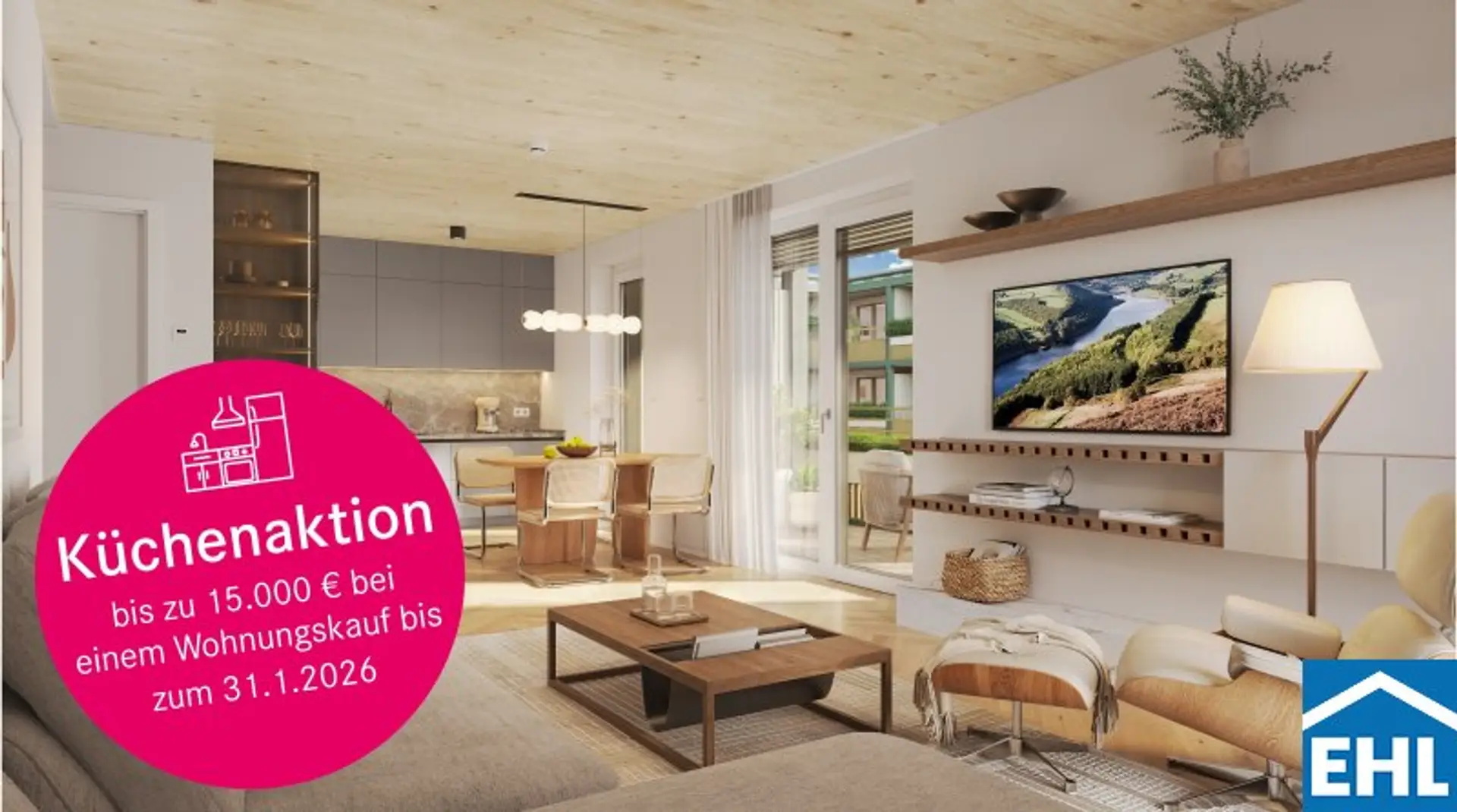 Beim Kauf einer 3- oder 4-Zimmerwohnung kann ein Kfz-Stellplatz in der hauseigenen Tiefgarage um € 44.000,- erworben werden.
