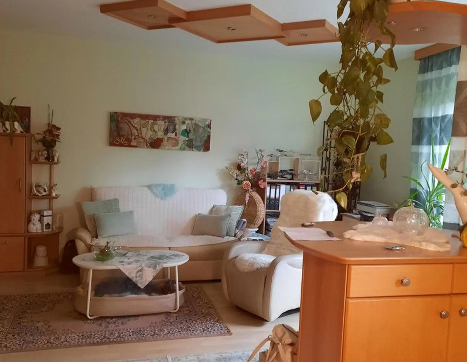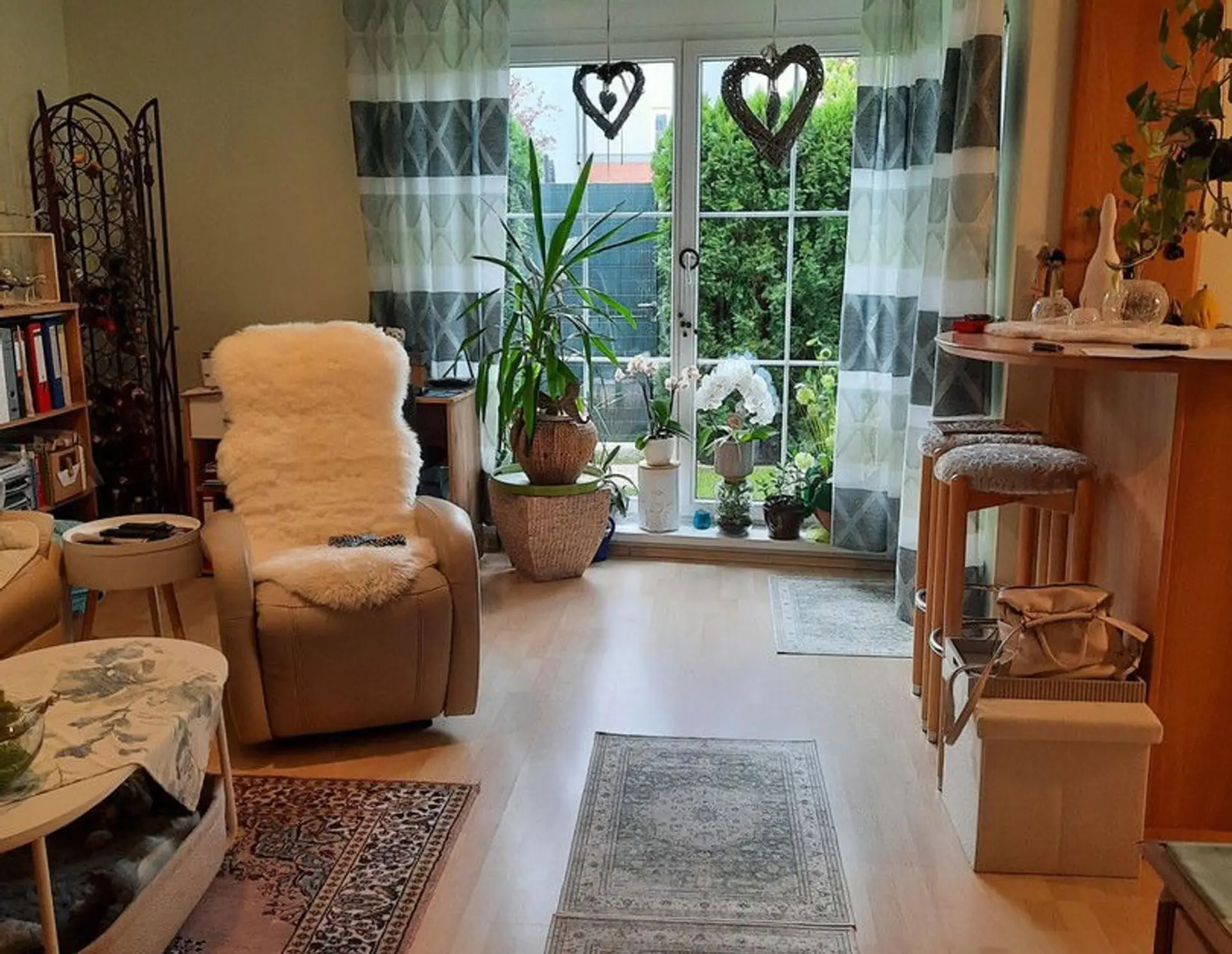 Stilvoll, geräumige helle 2ZKB, Wohnung im EG mit Terrasse und Garten. Es sind verschiedene Möbel zum Ablösen, sowie im Garten: weitere Informationen: Terrasse, Garten, Keller, Vollbad, Einbauküche, Gäste-WC, Barr…