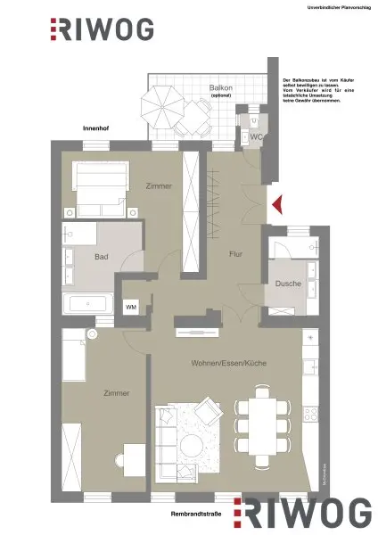 Wohnungseigentum in Entstehung. Derzeit wird ein Nachtrag zum WE-Vertrag erstellt, in welchem festgehalten wird, dass die Errichtung von Balkonen auf eigene Kosten an der Fassade der Innenhöfe der Liegenschaft zulässig ist.