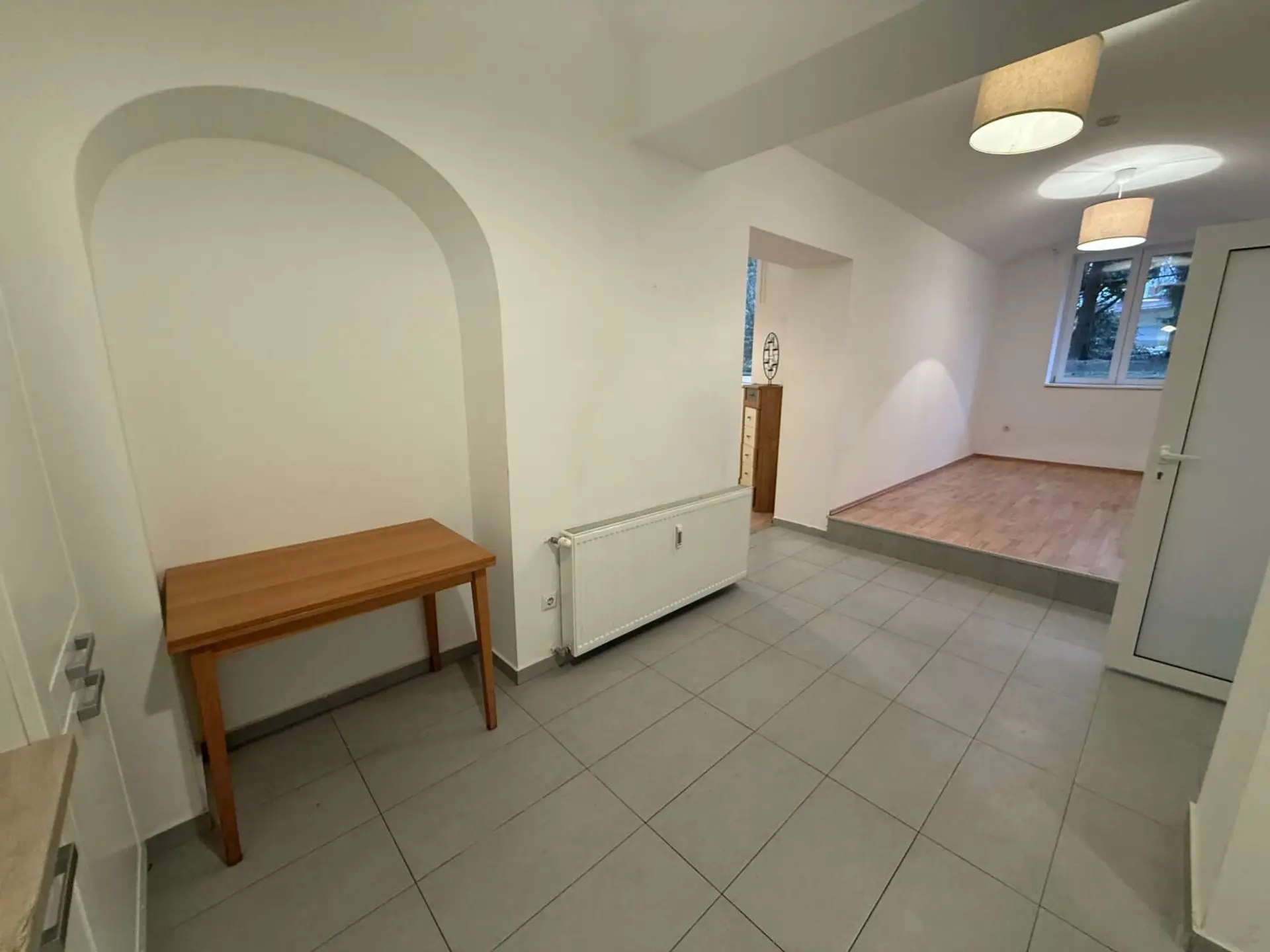 Vorraum mit Zugang zum WC inkl. Waschbecken. Küche (neu möbliert) mit Wohn und Essbereich. Separates Bad mit Dusche, WM-Anschluss, Waschbecken und Fenster. Separater Schlafbereich mit ausreichend Platz für einen Schreibtisch. Große Fensterflächen. Garten kann allgemein genutzt werden.