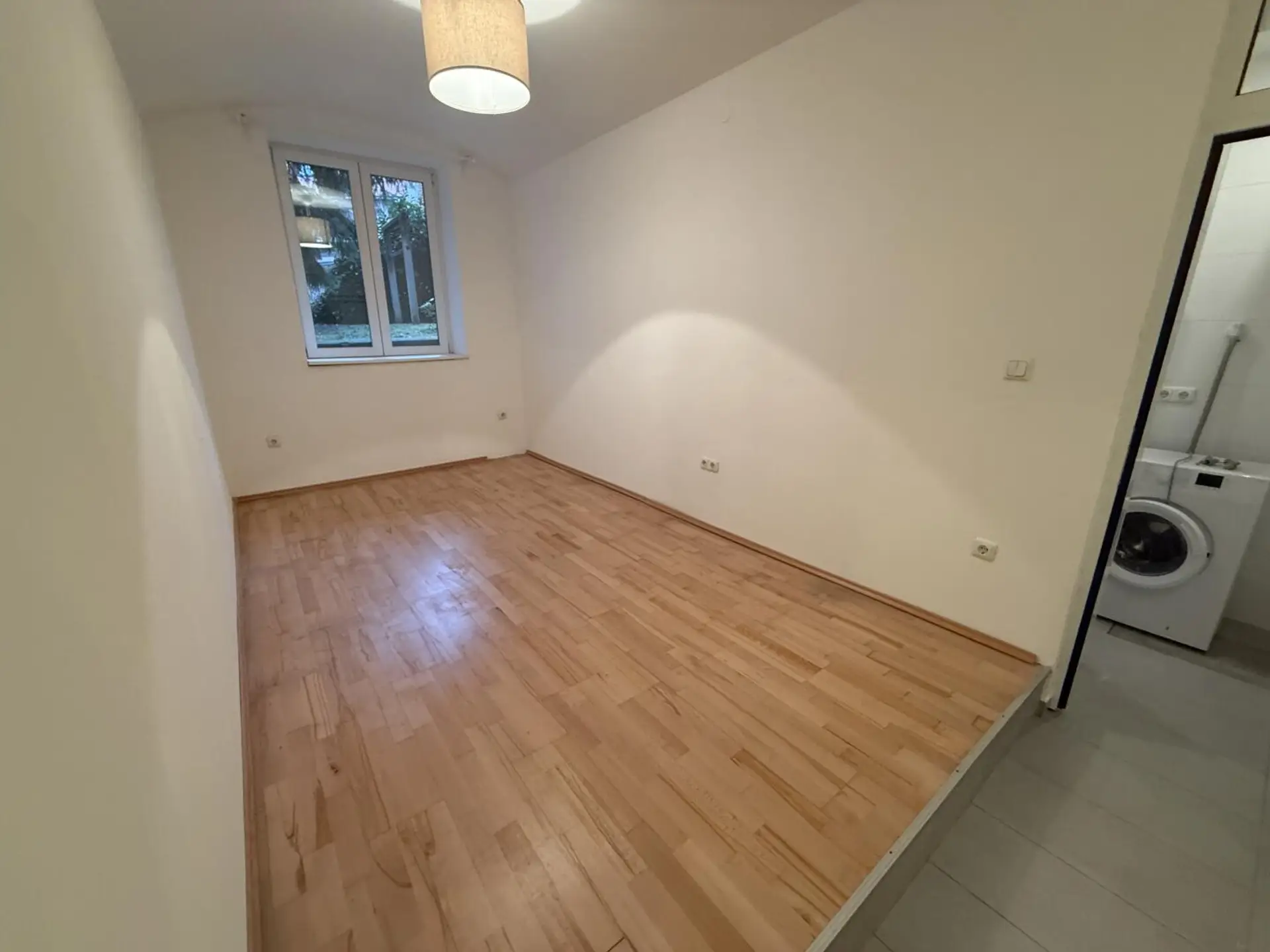 Vorraum mit Zugang zum WC inkl. Waschbecken. Küche (neu möbliert) mit Wohn und Essbereich. Separates Bad mit Dusche, WM-Anschluss, Waschbecken und Fenster. Separater Schlafbereich mit ausreichend Platz für einen Schreibtisch. Große Fensterflächen. Garten kann allgemein genutzt werden.