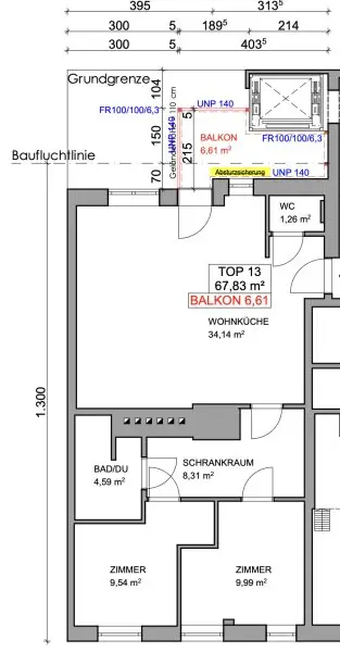 _*optionaler Balkon: _die Bewilligung für einen Balkon mit ca. 6,61m² im Innenhof liegt vor (siehe Plan) und kann auf Kosten des Käufers errichtet werden