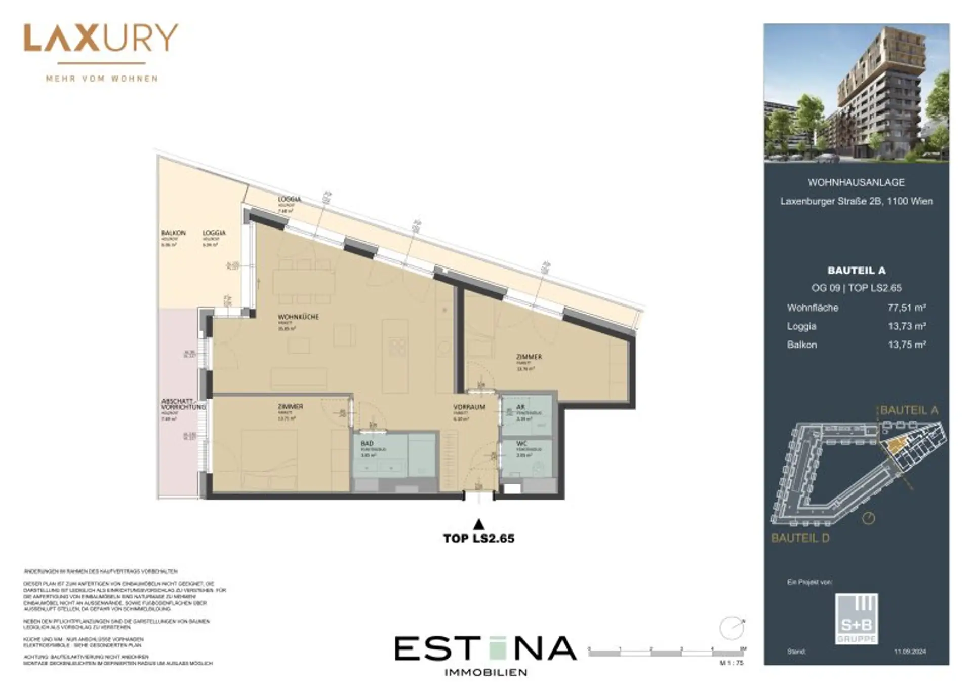 Mit seiner Mischung aus Wohnung und Büro nimmt LAXURY den Grundgedanken moderner Stadtentwicklung auf: Vielfalt mit Mehrwert. Im Fokus stehen 80 moderne, klug geschnittene Eigentumswohnungen mit einer Größe von ca. 30 m2 bis ca. 180 m2 mit 1 - 4 Zimmer. Die oberen Stockwerke bieten einen sensationellen Blick über die Stadt.