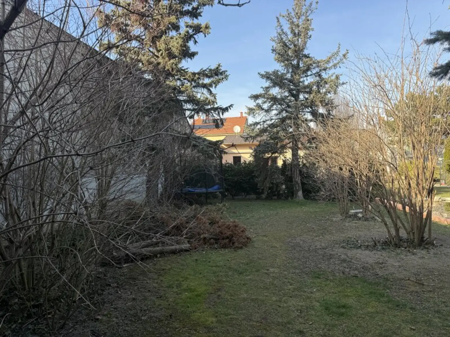 Es sind ca. 150 m² verbaubar - Bauklasse 1 (= 4,5 m) in geschlossener Bauweise. Wie auf den Bildern ersichtlich, haben Sie kein lästiges vis-a-vis. Auch der Grund als solches ist durch den Bestand an Bäumen und Sträuchern uneinsichtig. Der Grund ist nicht aufgeschlossen (Wasser, Kanal und Erdkabel für den Stromanschluss sind in der Straße vor dem Grundstück vorhanden) und liegt in absoluter Grünruhelage. Nicht nur die Therme Oberlaa ist zu Fuß erreichbar sondern auch der Laaer Berg mit seinen Weingärten und Heurigen.