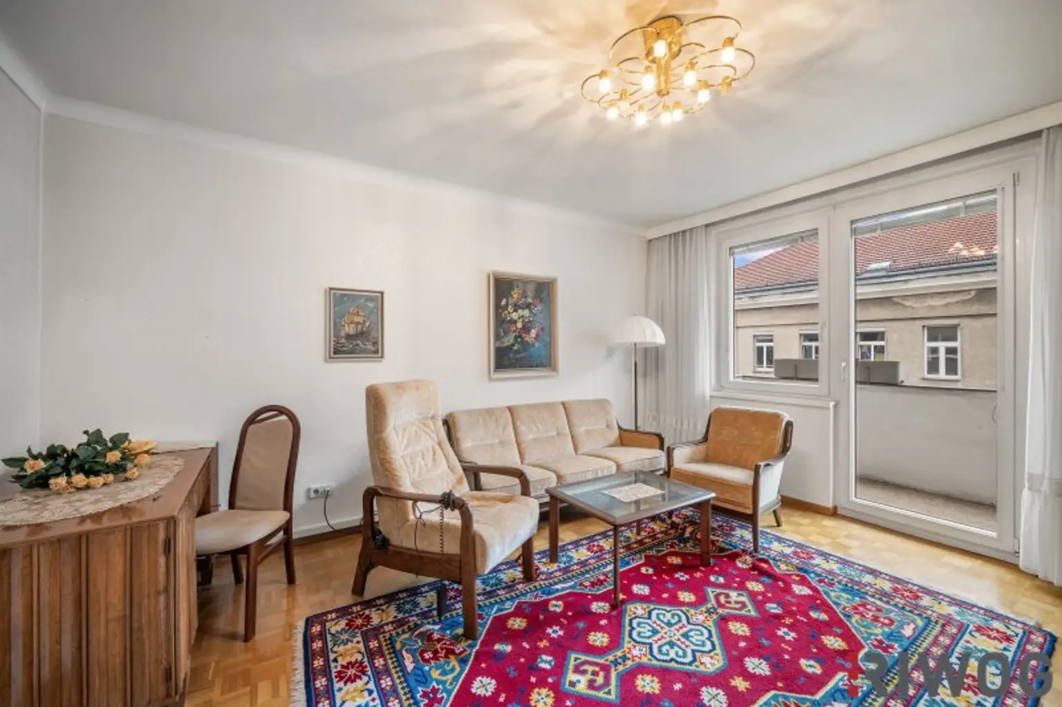 Sowohl vom Wohnzimmer als auch vom (künftig) zweiten Schlafzimmer gelangt man auf den Balkon.