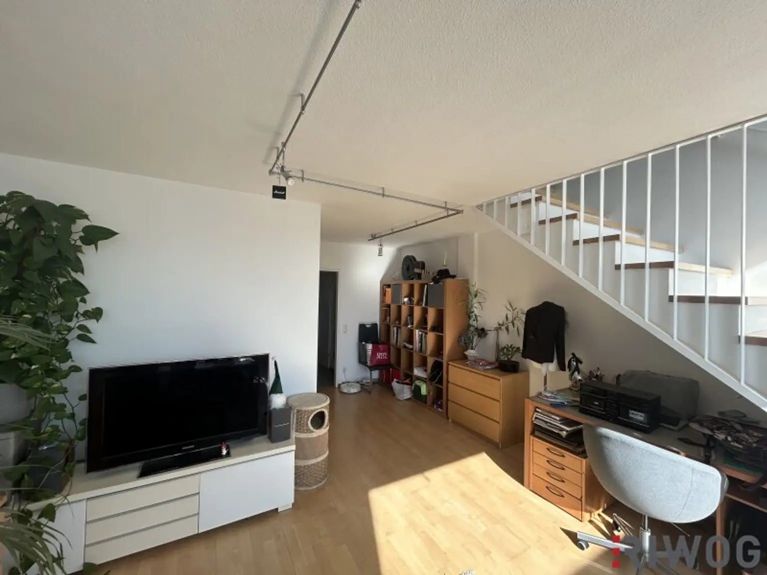 Durch die süd-östliche Ausrichtung und die große Fensterfront im Wohnbereich und vor der Galerie besteht eine angenehme und helle Atmosphäre in der Wohnung.