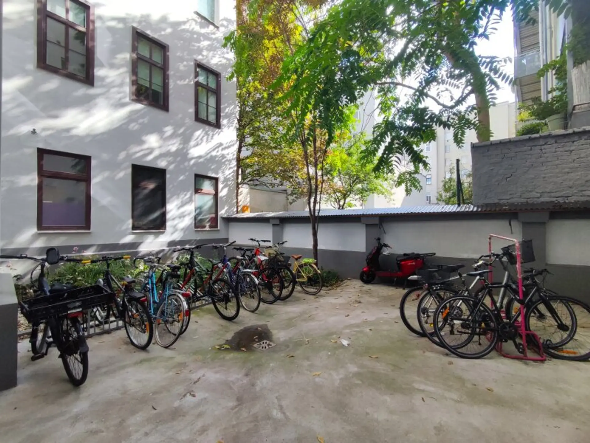 Die straßenseitigen und hofseitigen Fassaden wurden trockengelegt, neu verputzt und frisch gestrichen, das Stiegenhaus wurde ausgemalt und mit moderner LED-Beleuchtung ausgestattet, und im Keller sorgt eine neue Be- und Entlüftungsanlage für ein gutes Klima. Zudem wurde der Innenhof mit Fahrradabstellplätzen entsiegelt, begrünt und neu gestaltet.
