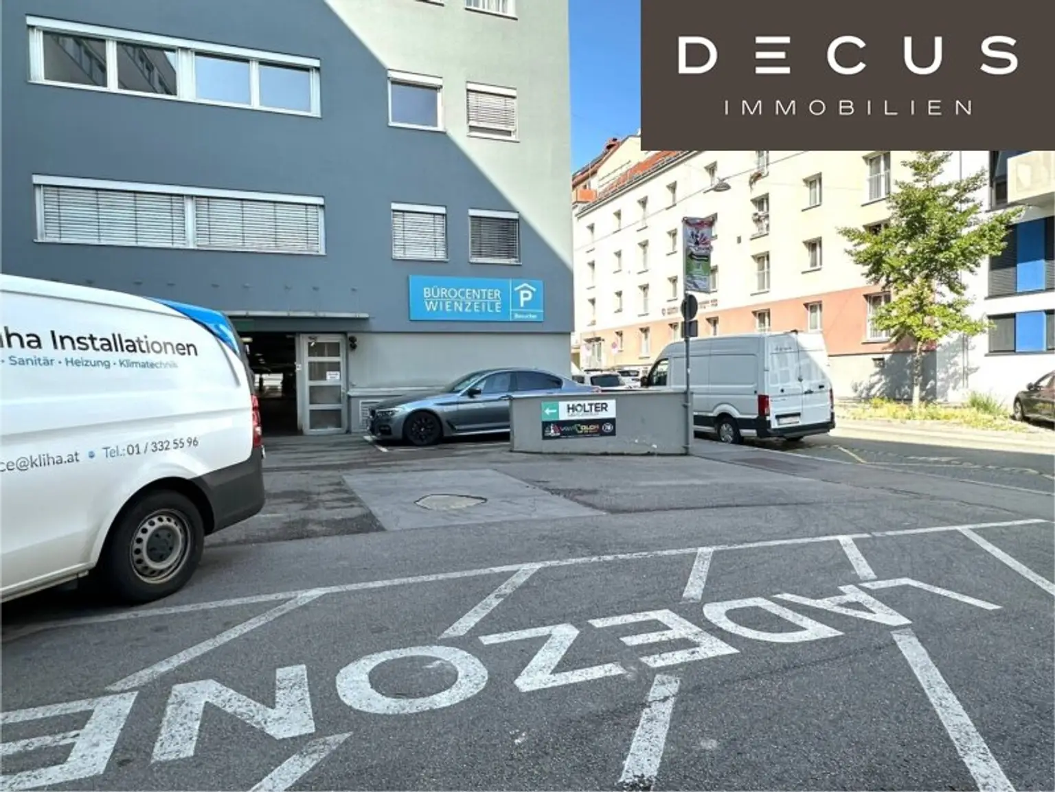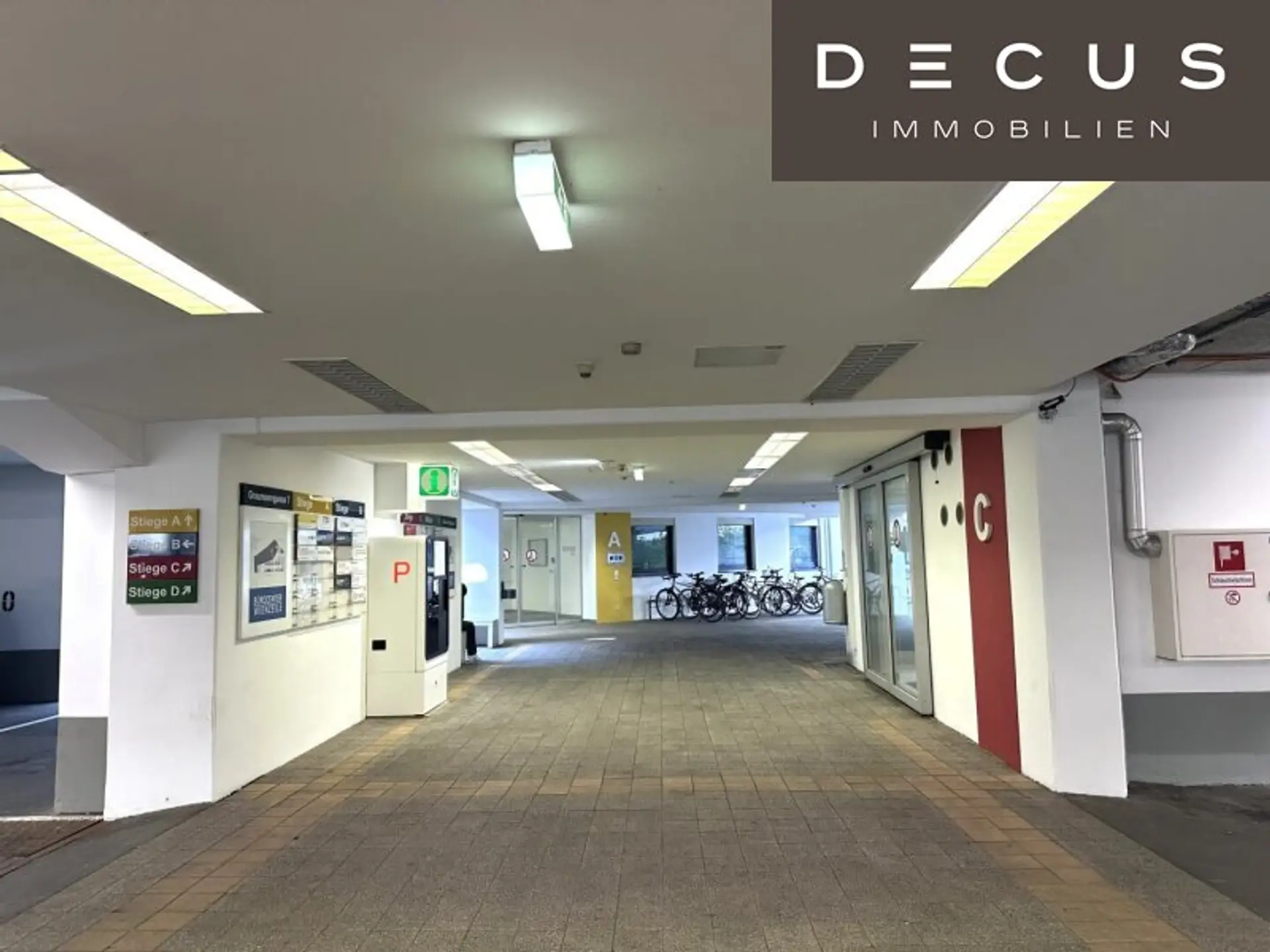 Im Erdgeschoß stehen Kunden-Kurzparkplätze zur Verfügung, für die ersten 2 Stunden ist der Kundenparkplatz gratis.