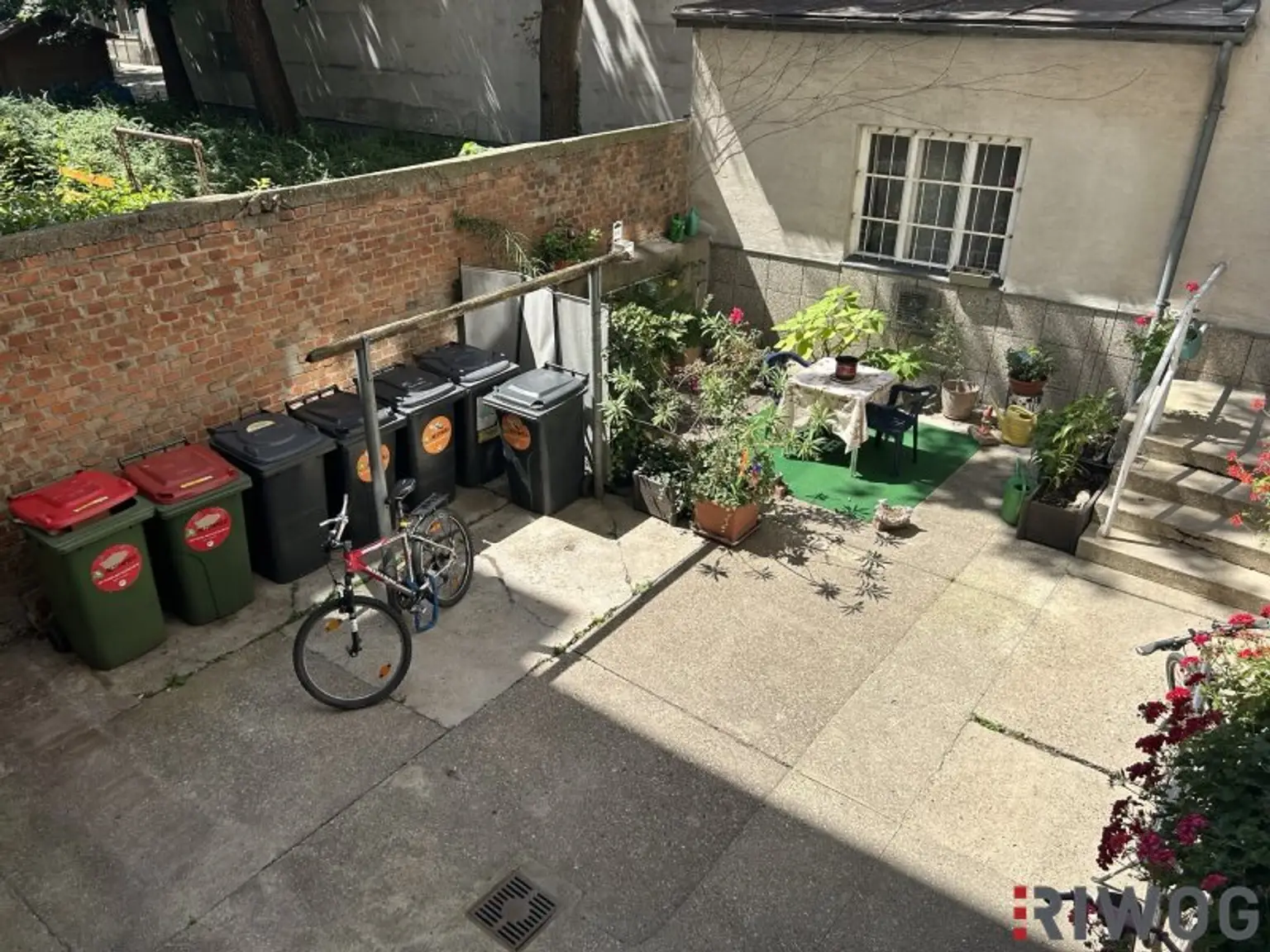 Die Wohnung teilt sich wie folgt auf: Zimmer, Terrasse (14m²), Küche, Badezimmer, WC, Vorraum, Kellerabteil