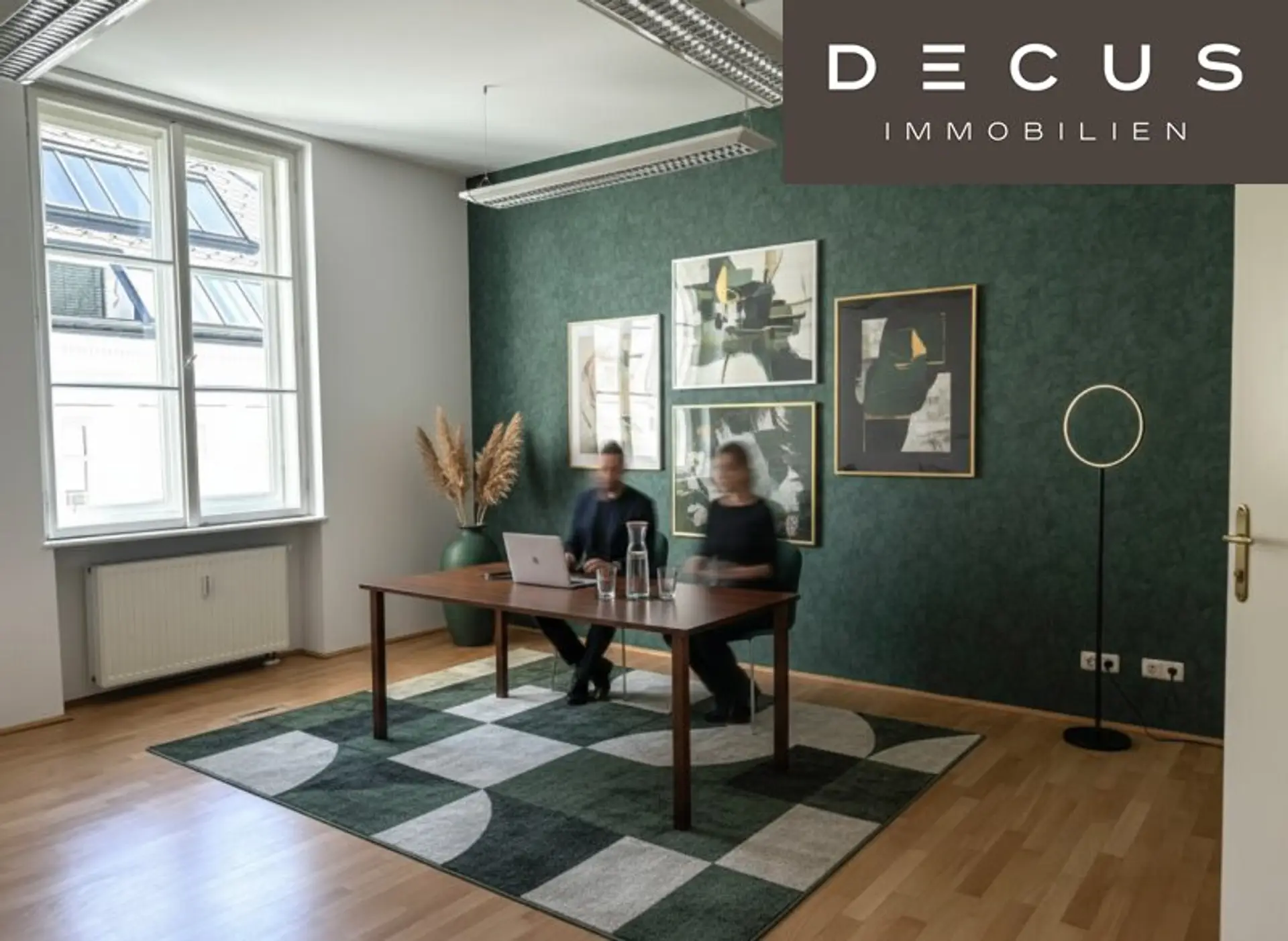 Die 6 Räume sind zentral begehbar, wodurch sich ein klar strukturierter Grundriss ergibt, der sowohl für konzentriertes Arbeiten als auch für Zusammenarbeit im Team bestens geeignet ist.