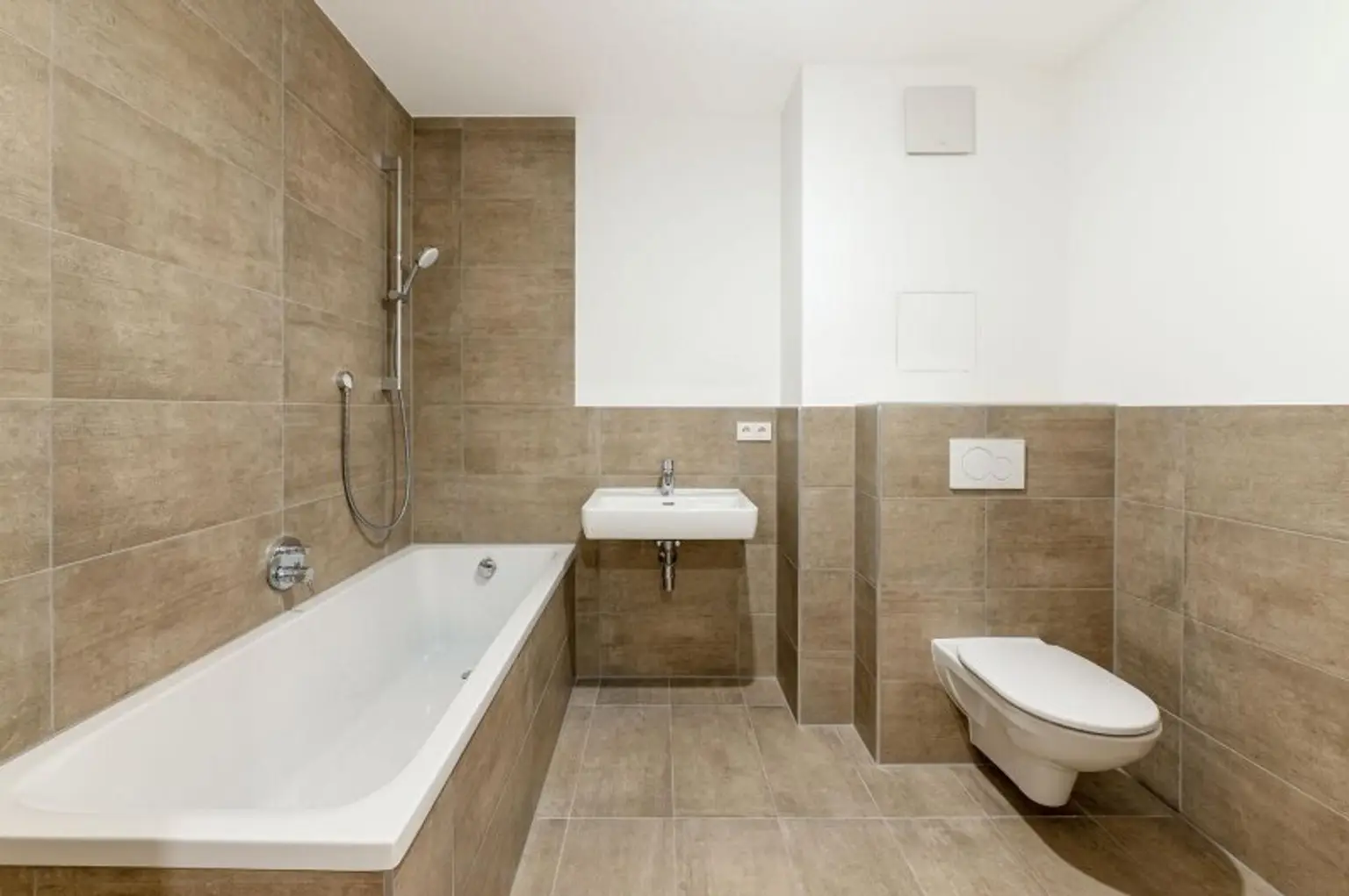 - Badezimmer mit Wanne, WC und Waschmaschinenanschluss