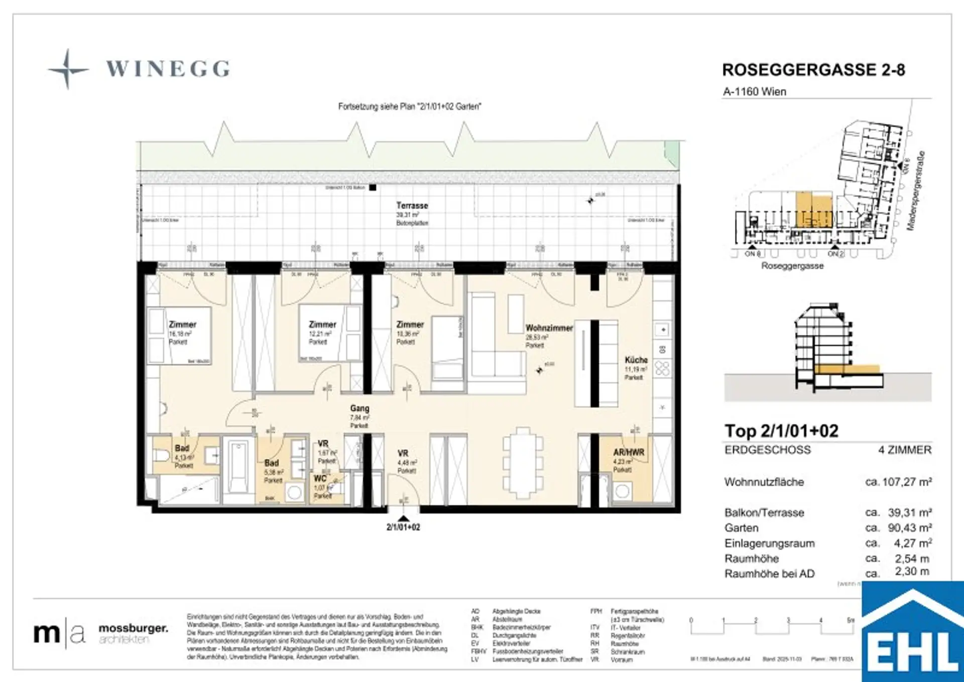 In der Roseggergasse 2–8, unweit des Wilhelminenbergs, entstehen 124 hochwertige Eigentumswohnungen. Die Wohnflächen reichen von ca. 39 m² bis 245 m² und bieten Grundrisse mit zwei bis sechs Zimmern – ideal für unterschiedlichste Wohnbedürfnisse.