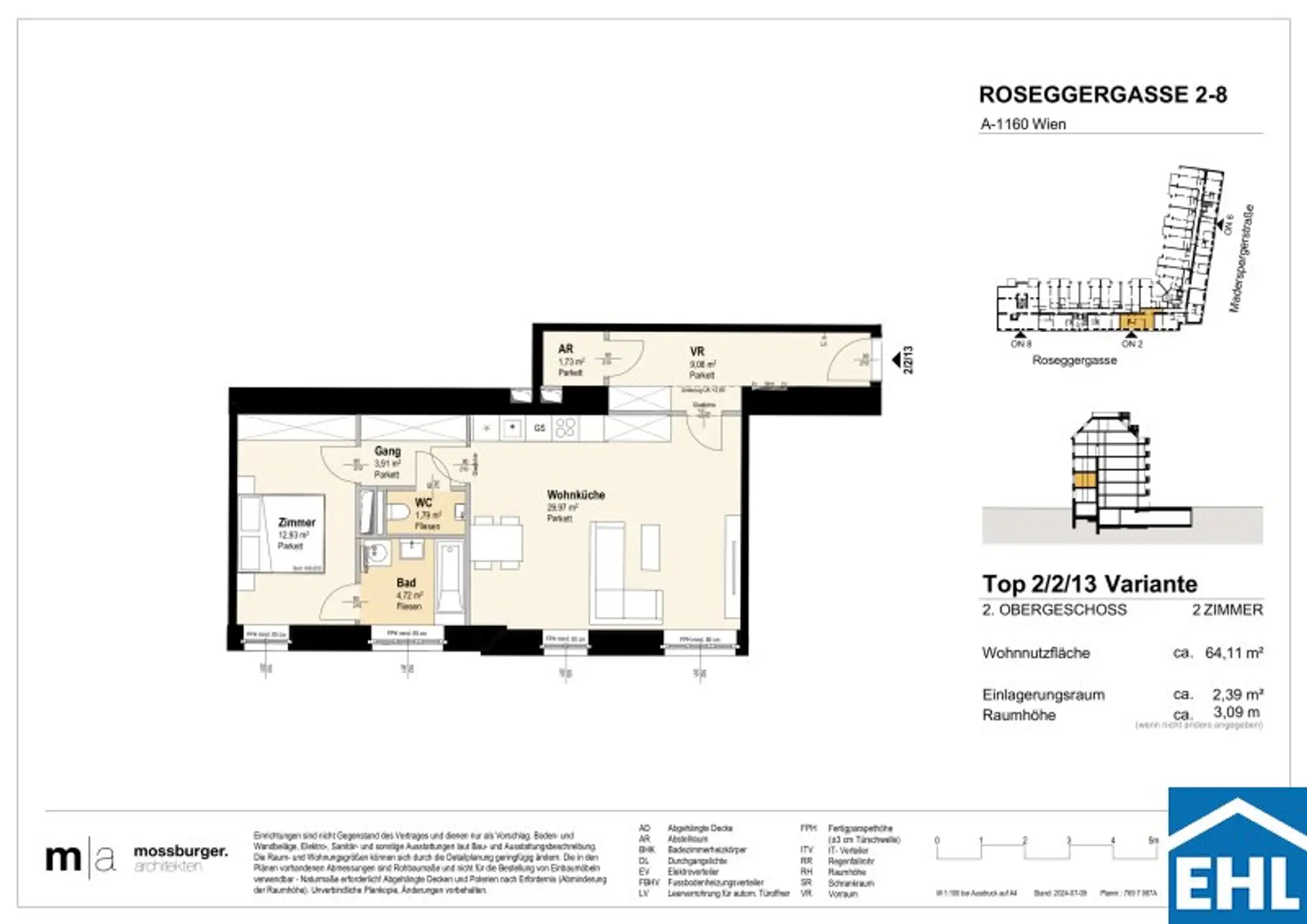 In der Roseggergasse 2–8, unweit des Wilhelminenbergs, entstehen 124 hochwertige Eigentumswohnungen. Die Wohnflächen reichen von ca. 39 m² bis 245 m² und bieten Grundrisse mit zwei bis sechs Zimmern – ideal für unterschiedlichste Wohnbedürfnisse.
