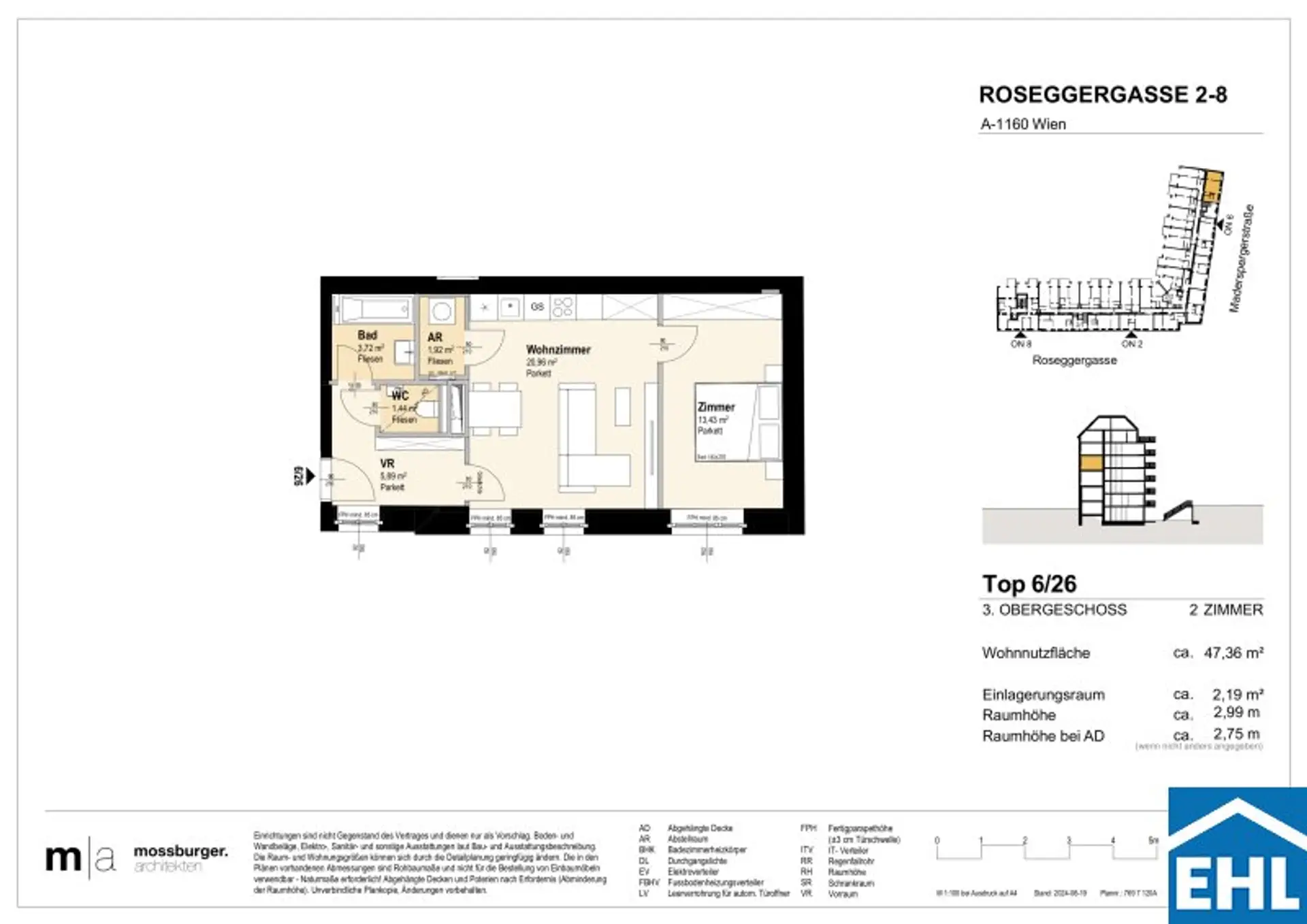 In der Roseggergasse 2–8, unweit des Wilhelminenbergs, entstehen 124 hochwertige Eigentumswohnungen. Die Wohnflächen reichen von ca. 39 m² bis 245 m² und bieten Grundrisse mit zwei bis sechs Zimmern – ideal für unterschiedlichste Wohnbedürfnisse.