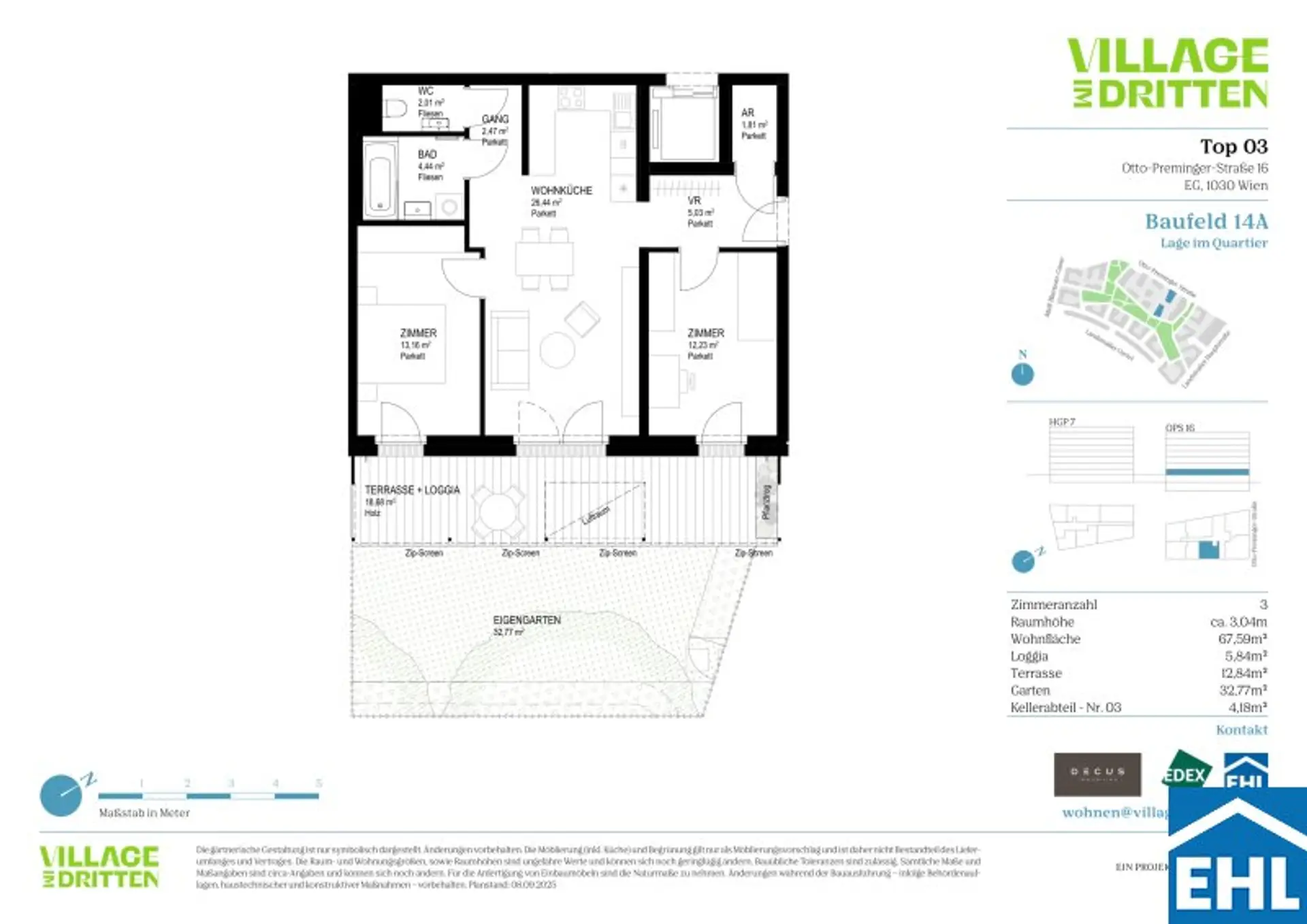 Im dritten Wiener Gemeindebezirk entsteht mit dem VILLAGE IM DRITTEN ein neues Stück Stadt – eines der größten Stadtentwicklungsgebiete Wiens. Auf über elf Hektar entwickelt die ARE Austrian Real Estate gemeinsam mit der Stadt Wien und dem wohnfonds_wien ein lebendiges, nahezu autofreies Quartier mit rund 2.000 Wohnungen,  Büro- und Gewerbeflächen, Kinderbetreuung, Bildungseinrichtungen und Nahversorgung. Das grüne Herz bildet der über 2 Hektar große Bert-Brecht-Park –eine Oase für Erholung,  Begegnung und Spiel. Alle Dächer, die nicht begehbar sind, werden begrünt. Sharing-Angebote, Einkaufsmöglichkeiten und Gastronomie liegen direkt vor der Haustüre. Nachhaltigkeit, kurze Wege und hohe Lebensqualität sind die Leitlinien dieses neuen Stadtviertels.