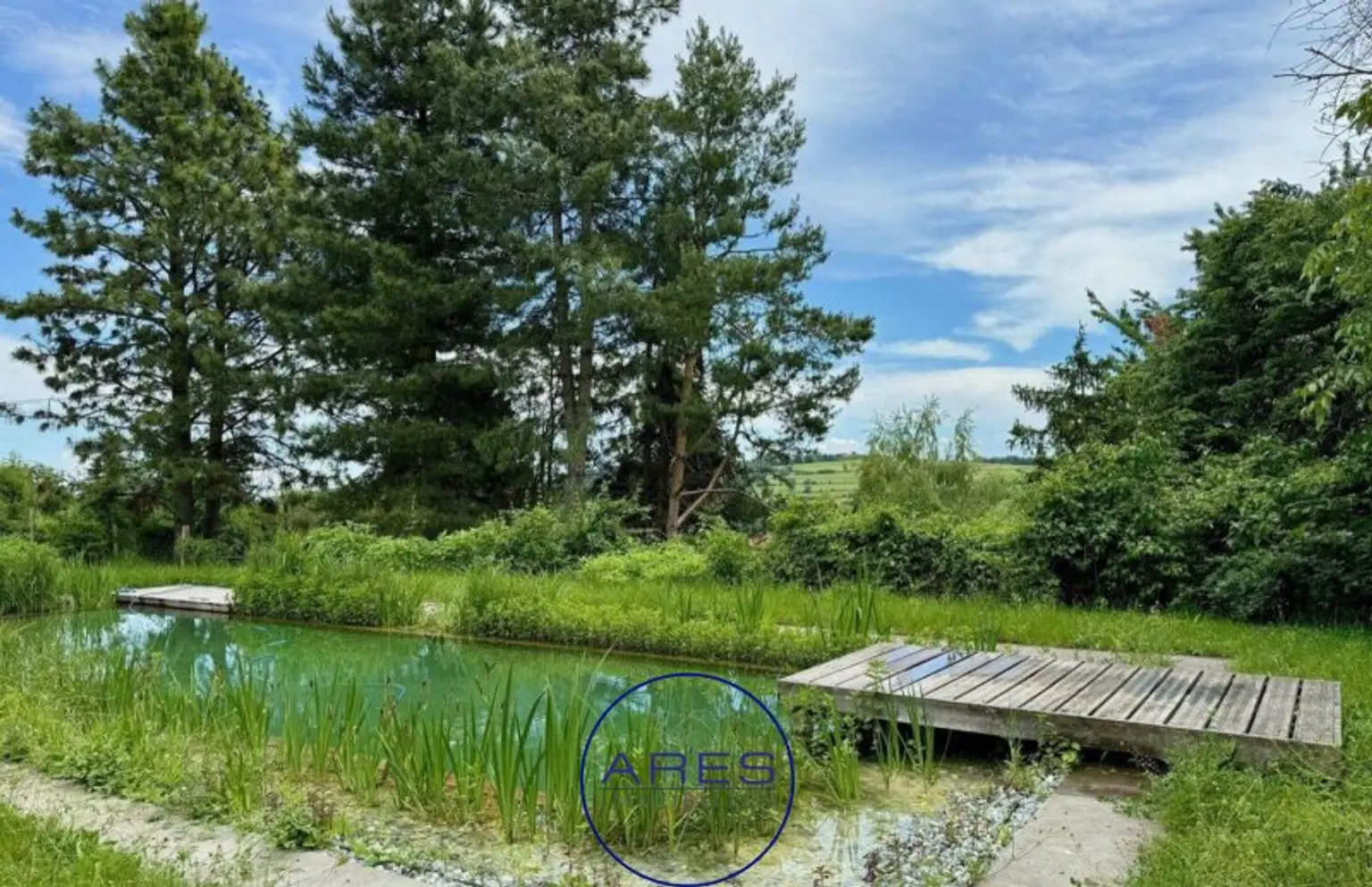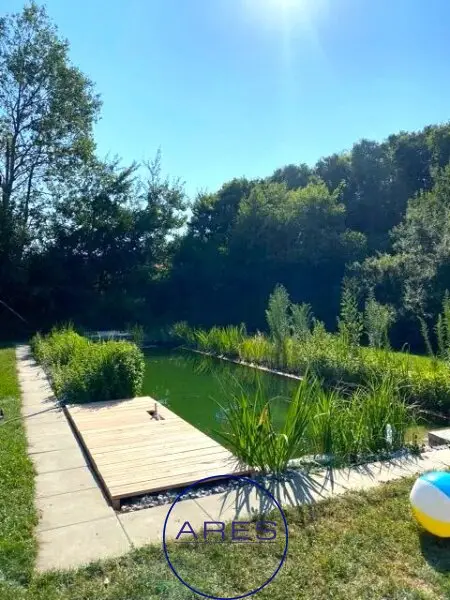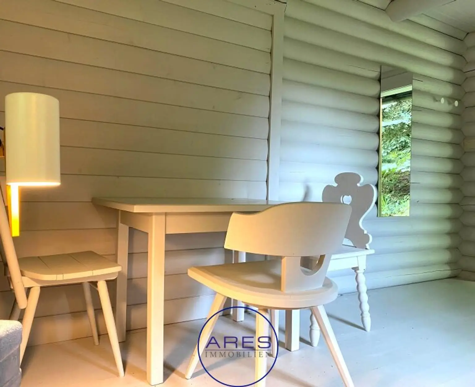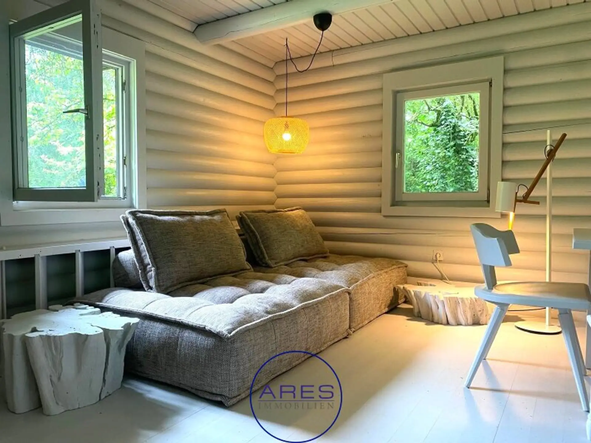 Ein uriges Blockhäuschen - als Gartenhütte genehmigt - mit massiven Sitzgelegenheiten davor, Stromanschluss, Brunnen, kleiner Geräteschuppen, zwei Hochbeete, vor allem aber der herrliche Naturpool (Folienpool), bieten neben ausgleichender Gartenarbeit auch Erholung pur!