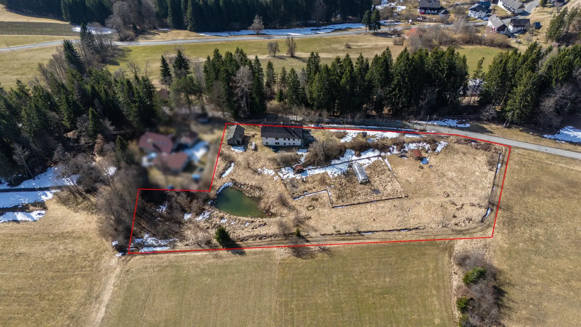 Das Grundstück eignet sich hervorragend für Menschen, die sich ein Leben im Grünen wünschen – beispielsweise für Gemüseanbau, Selbstversorgung oder einfach viel Platz für Familie und Freizeit. Ein kleiner angelegter Teich befindet sich ebenfalls auf dem Grundstück und unterstreicht den idyllischen Charakter dieser Liegenschaft.