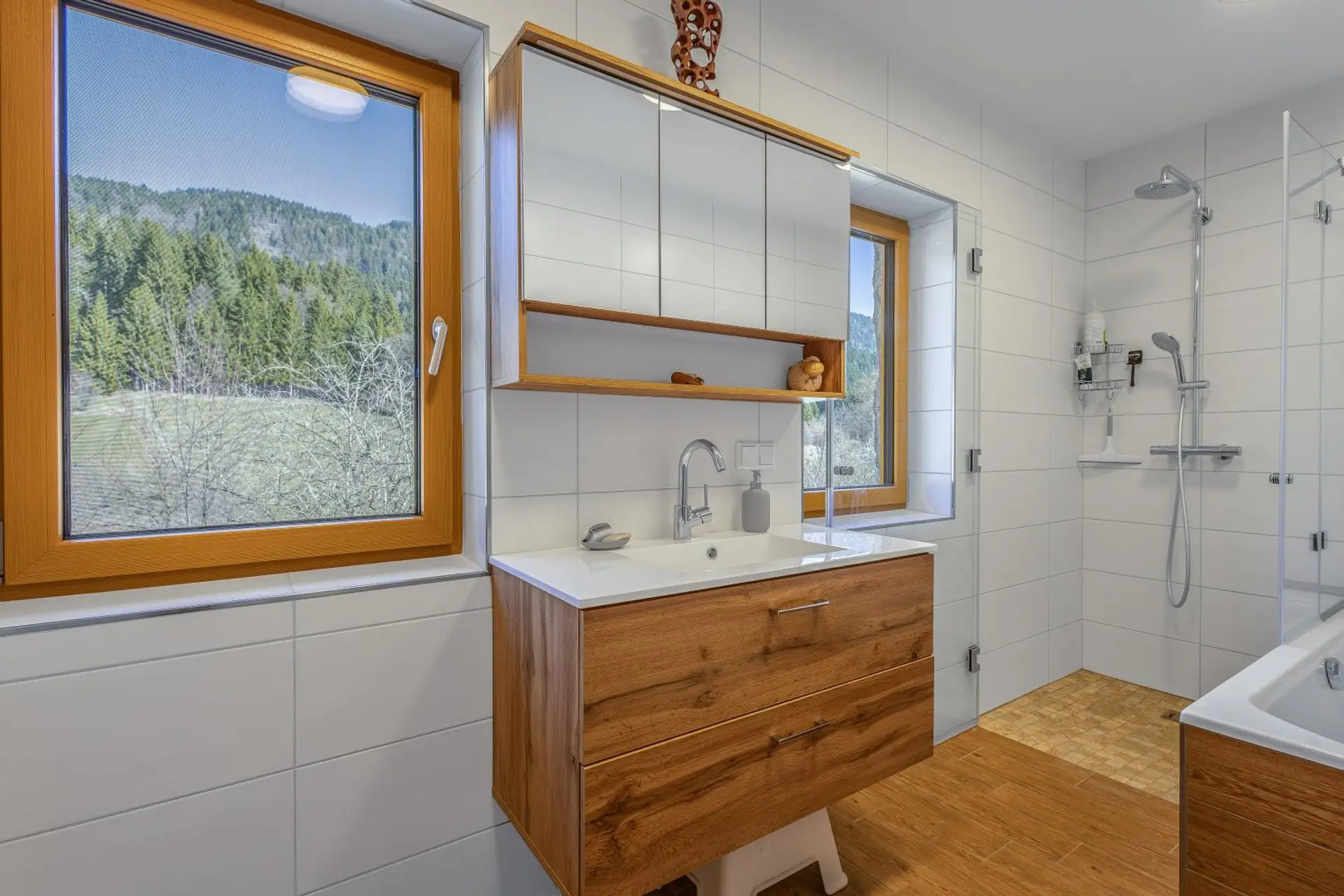 Die Beheizung erfolgt über eine moderne Zentralheizung mittels Erdwärme (Tiefbohrung). Im Wohngeschoss sorgt eine Fußbodenheizung für komfortable und gleichmäßige Wärme.