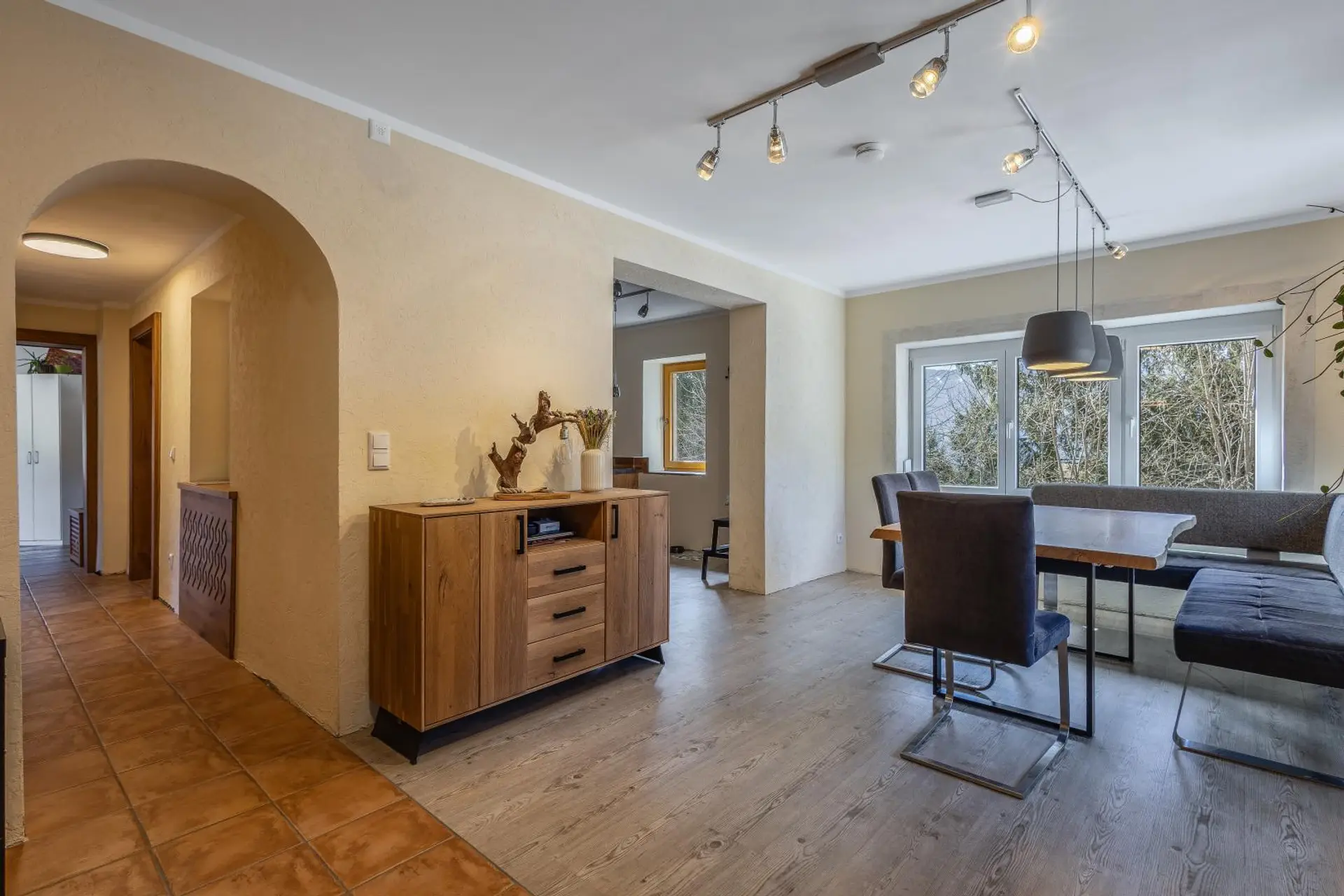 Bereits vorhanden sind zwei fertige Schlafzimmer, wodurch das Haus auch für Familien sehr gut geeignet ist. Die Wohnräume sind hell und bieten eine angenehme Wohnatmosphäre.