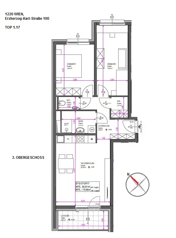 Diese moderne 3-Zimmer-Wohnung im 3. Liftstock mit Loggia in der Erzherzog-Karl-Straße ist ein attraktives Investment in den lebenswerten 22. Bezirk. Die Wohnung (ca. 65 m²) befindet sich im 3. Obergeschoss eines modernen Neubaus, welcher kürzlich fertiggestellt wurde. Sie besticht mit der tollen ca. 6 m² großen südwestseitigen, sonnigen Loggia. Die begehrte Lage sichert hervorragende Perspektiven für eine nachhaltige Wertsteigerung - perfekt für Eigennutzer und Anleger gleichermaßen. Die Ausstattungs-Highlights: - Kunststoff-Alu-Fenster mit 3-fach-Isolierverglasung - Innentüren aus Holz und einbruchshemmende Wohnungseingangstüren - Parkettböden in Eiche Landhausdiele CHALE 190 - Feinsteinzeug-Fliesen im Format 30 × 60 cm - Sanitärmöbel von LAUFEN und Armaturen von GROHE - Digitale Videogegensprechanlage - Elektrische, außenliegende Raffstores an allen Fenstern - Wasser- und Stromanschlüsse auf allen Balkonen und Terrassen - Hochwertige Steinbeläge auf sämtlichen Außenflächen - Luftwärmepumpe mit Fußbodenheizung - Kinderwagen- und Fahrradabstellraum - Großzügige Tiefgarage mit E-Ladevorbereitung - Aufzug in alle Stockwerke - Klimaanlage im 2. Dachgeschoss installiert, im 1. Dachgeschoss vorbereitet - Modernes Wohnkonzept für höchste Ansprüche an Komfort, Design und Nachhaltigkeit - Attraktive Freiflächen mit Blick auf Teich und Parkanlage Die Lage-Highlights: - Buslinien 26A und 94A (3 Gehminuten) - Straßenbahnlinie 25 (4 Gehminuten) - Bahnhof Erzherzog-Karl-Straße (5 Gehminuten) - Supermarkt (2 Gehminuten) - Otto-Affenzeller-Park (3 Gehminuten) - Lagerwiese Rehlacke / An der unteren Alten Donau (5 Minuten mit dem Rad) - Zahlreiche Gastronomieangebote Der Kaufpreis für diese in ausgezeichneter Lage und Infrastruktur befindliche Eigentumswohnung beträgt Euro 459.900,-. Kaufpreis Garagenplatz (optional): EUR 32.000,- Anlegerfreundliche Netto-Variante mit USt-Überrechnung möglich! Vereinbaren Sie noch heute einen Besichtigungstermin und lassen Sie sich von dieser besonderen Immobilie verzaubern. Diesbezüglich freuen wir uns über Ihre geschätzte Anfrage per Mail. Tipp: Die gesamte Anlage wird gerade parifiziert und abverkauft. Fragen Sie uns nach weiteren Objekten bzw. Paketangeboten! Wir möchten darauf hinweisen, dass unsere Antwort möglicherweise in Ihrem Spamordner landen könnte. Bitte kontrollieren Sie diesen, wenn Sie keine Rückmeldung auf Ihre Anfrage erhalten haben. Wir freuen uns auf Ihre Anfrage und einen gemeinsamen Besichtigungstermin! .