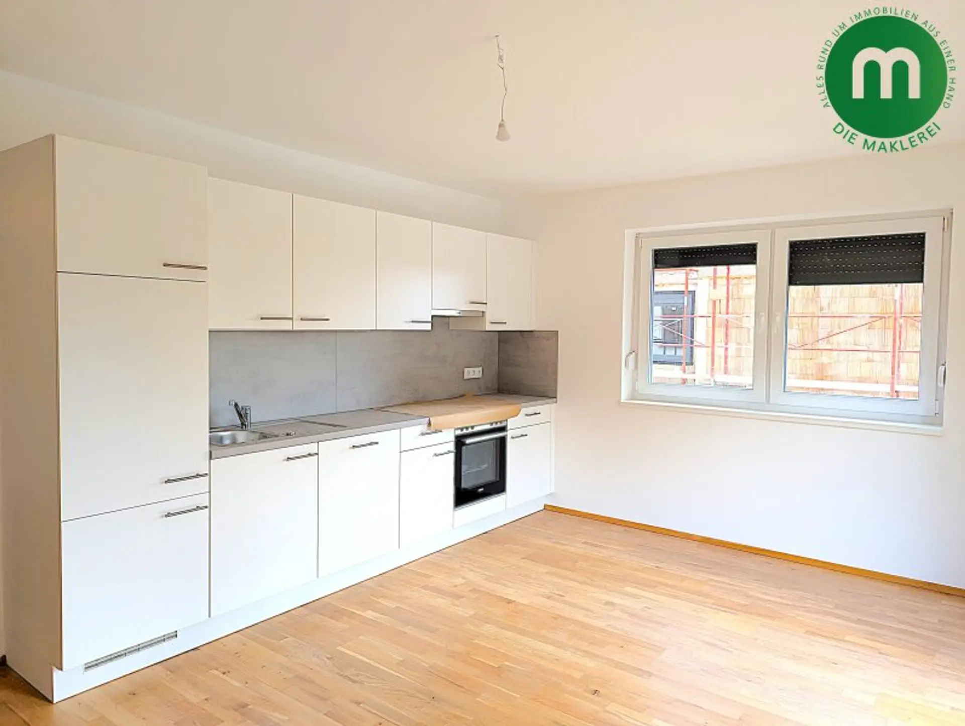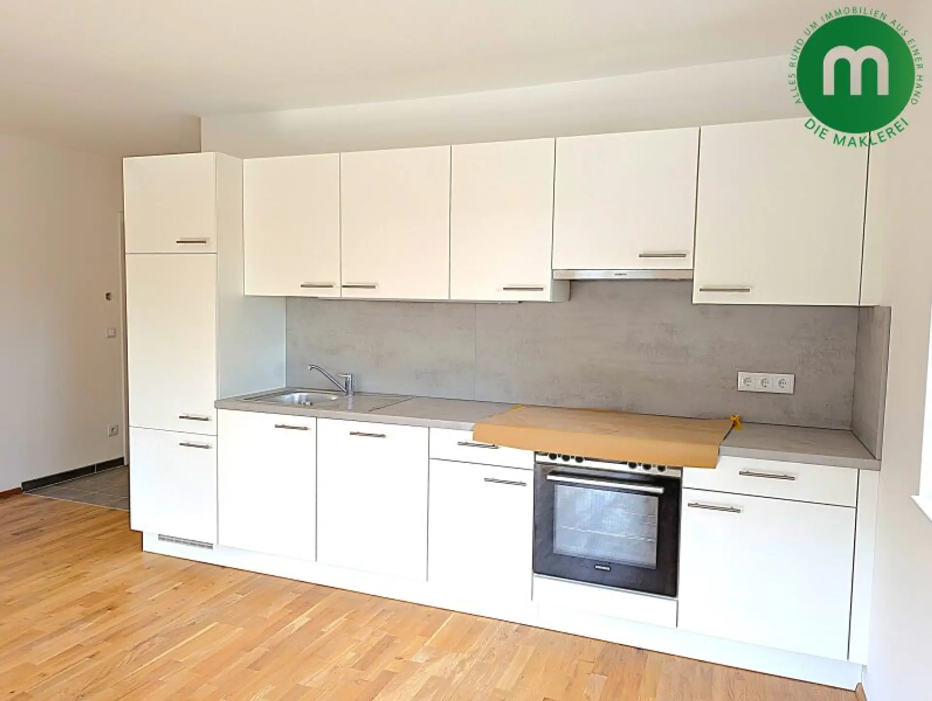 Die Wohnung befindet sich im 1. Liftstock eines 2025 fertiggestellten Hauses und besticht durch einen hellen Wohn- und Küchenbereich mit direktem Zugang zu einem großzügigen Balkon – perfekt, um warme Tage im Freien zu genießen. Die vollausgestattete Einbauküche mit modernen Geräten ist offen in den Wohnraum integriert und schafft ein gemütliches Ambiente. Ein ruhig gelegenes Schlafzimmer ergänzt das Raumangebot. Das Badezimmer verfügt über ein Fenster, ist mit einer Dusche und einem WC ausgestattet und präsentiert sich ebenso modern wie funktional. Hochwertige Parkett- und Fliesenböden, eine Fußbodenheizung sowie mehrfach verglaste Fenster sorgen für Wohnkomfort auf zeitgemäßem Niveau. Ein Kellerabteil steht ebenfalls zur Verfügung, im Haus sind ein Personenaufzug und Fahrradstellplätze vorhanden; ein Kfz-Abstellplatz ist ebenfalls anmietbar.