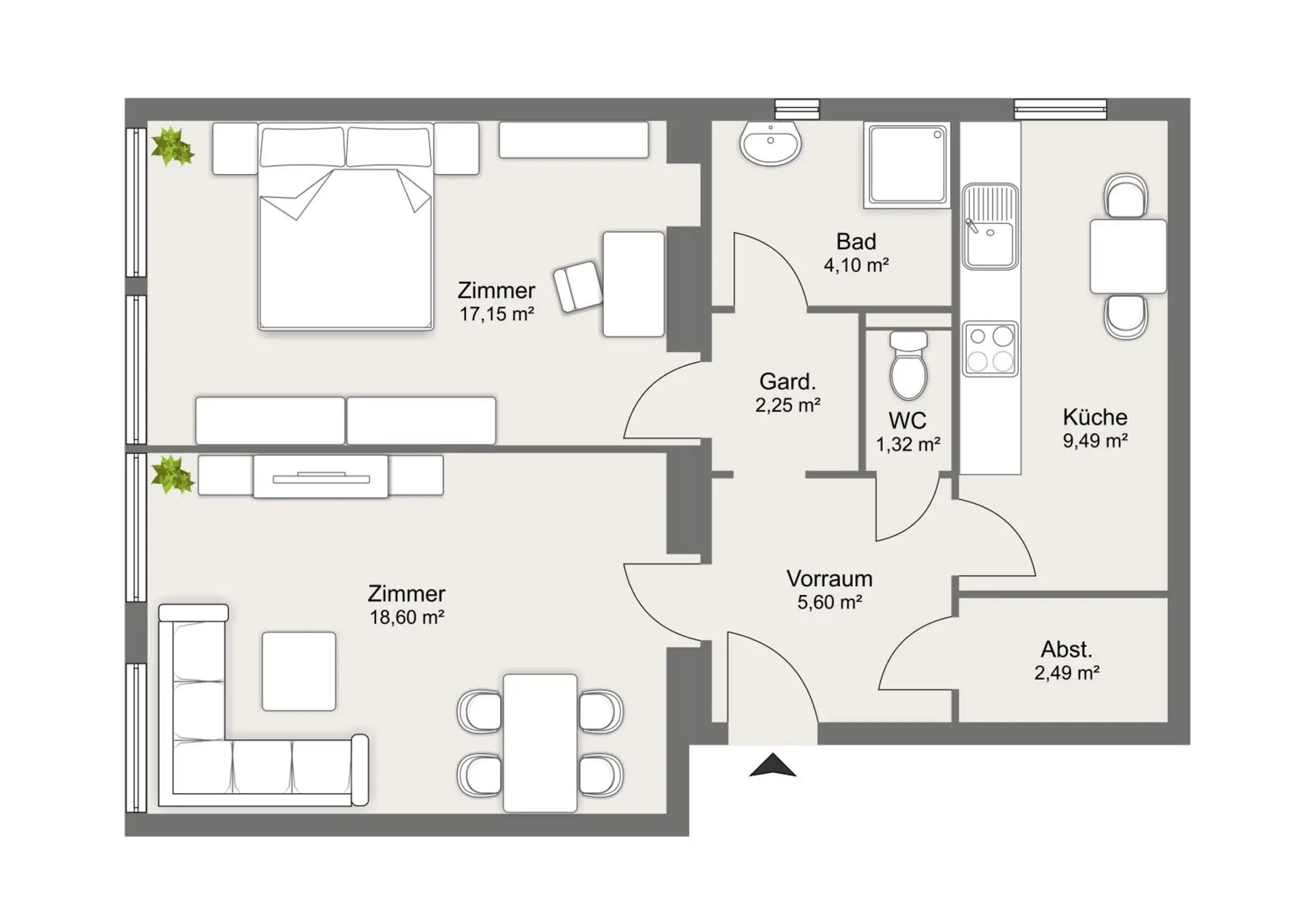 * Helle, gut geschnittene 2 Zimmer (56,91m2) im 2. Stock (KEIN LIFT!!!) - im Moment mittels Durchgang offen