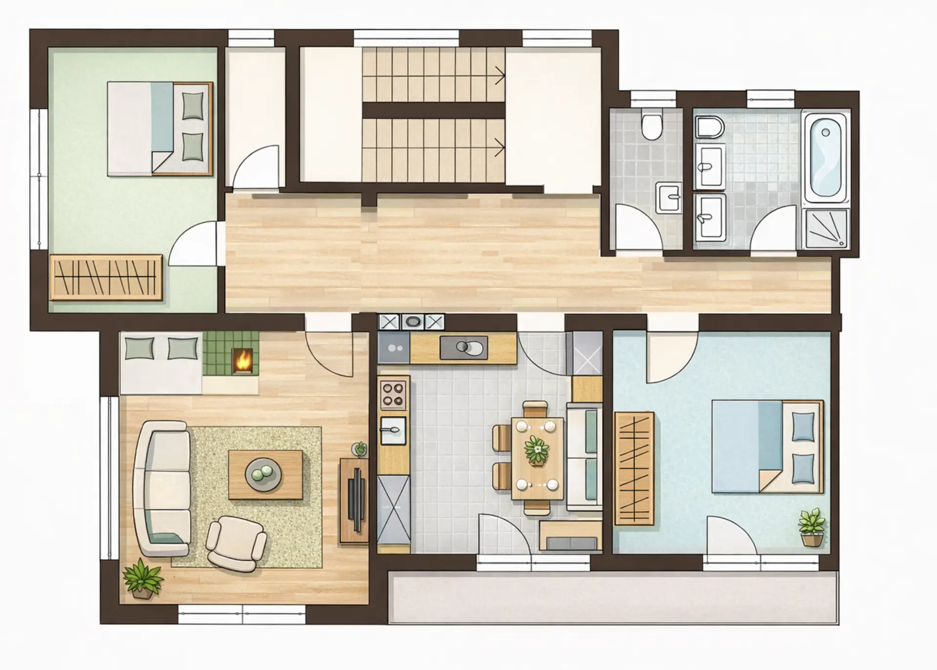 • Zwei Schlafzimmer (eines davon mit Balkonzugang)