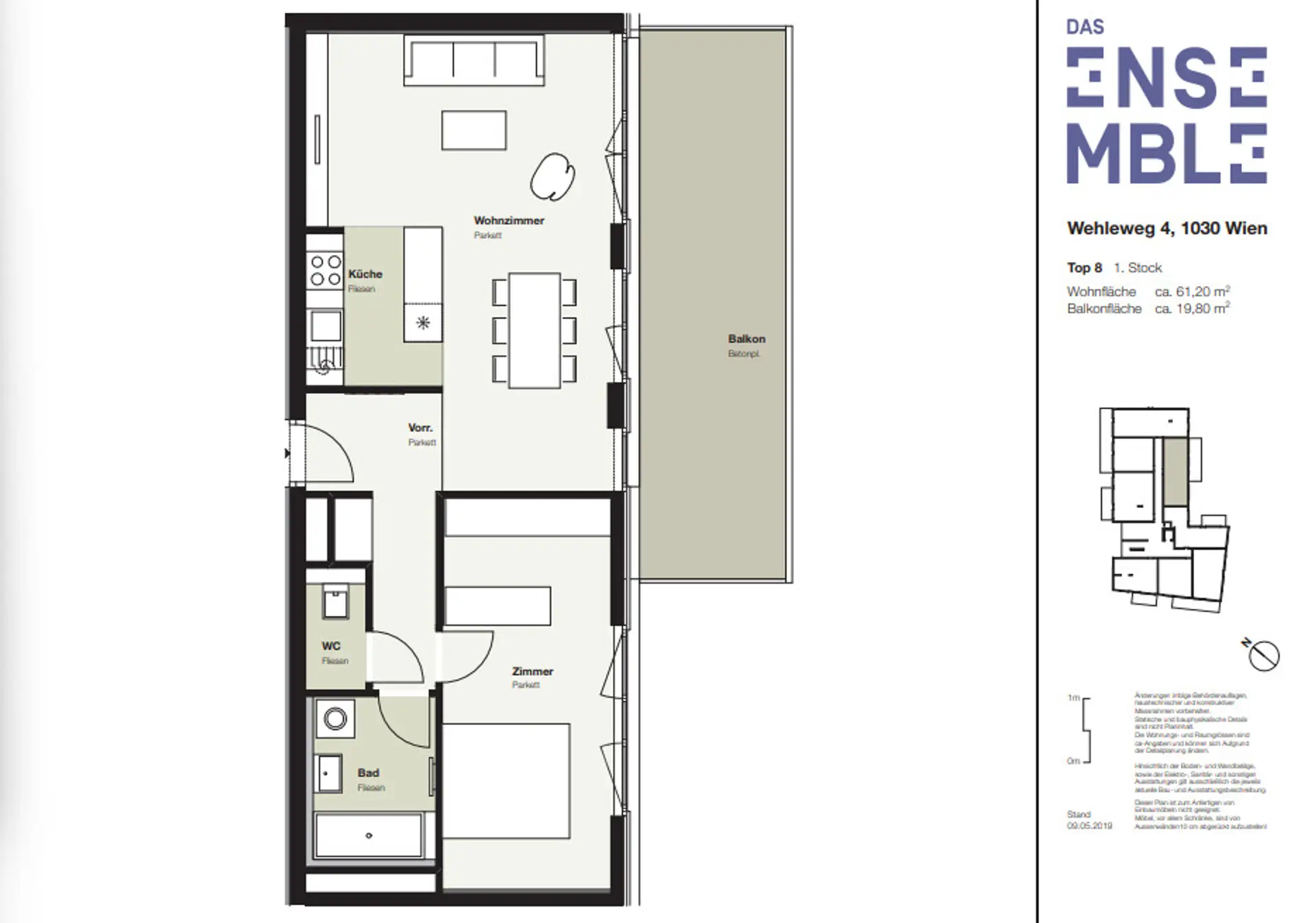 Optional: Ein Tiefgaragenstellplatz kann um rund € 110,– pro Monat angemietet werden.