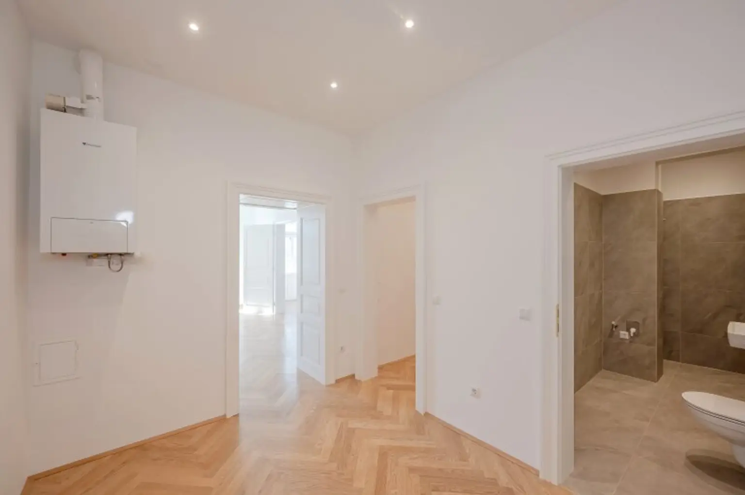 It is only a 2 minute walk to the nearest train station, so you can be in the centre in less than 10 minutes. There are supermarkets directly opposite this newly renovated traditional Viennese building and many parks and restaurants nearby, although the area is very quiet and peaceful at night.