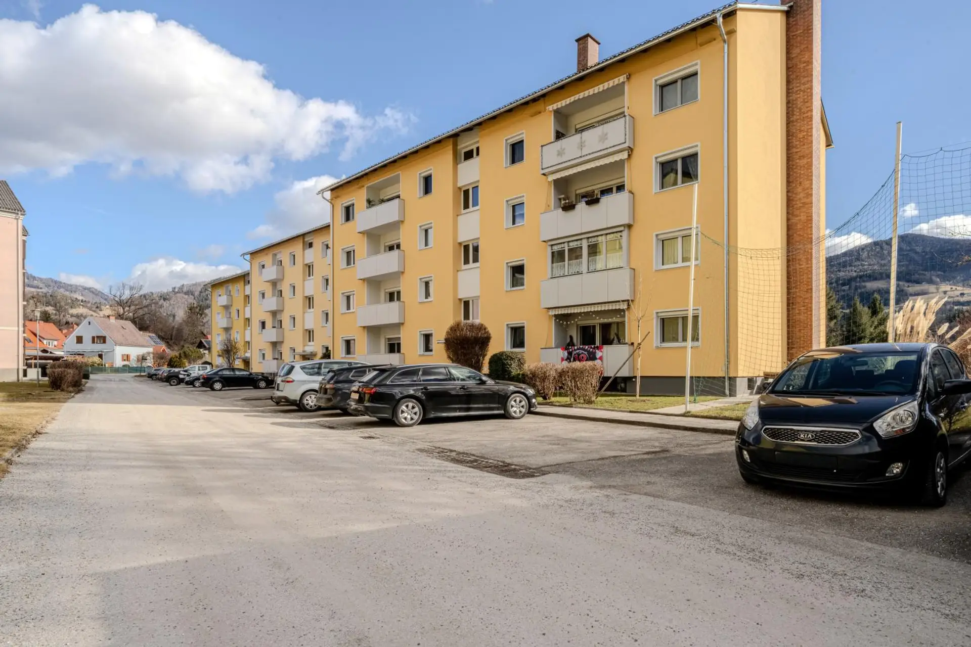 Nicht zugewiesene Autoabstellplätze sind vor dem Haus ausreichend vorhanden, ein Kellerabteil ist der Wohnung zugeordnet.