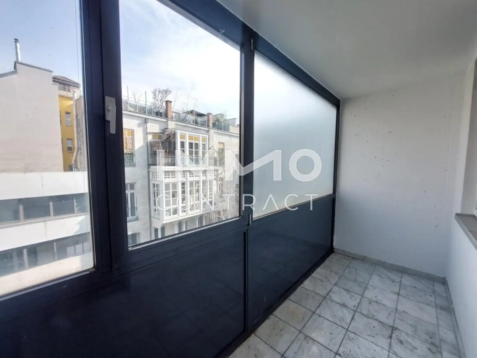 Die Wohnung liegt im 3.Liftstock und über den privaten Wintergarten gelangen Sie zur Wohnung mit Vorraum, Schlafzimmer, Abstellraum, Badezimmer und Wohnküche mit Blick auf die Kreuzgasse .