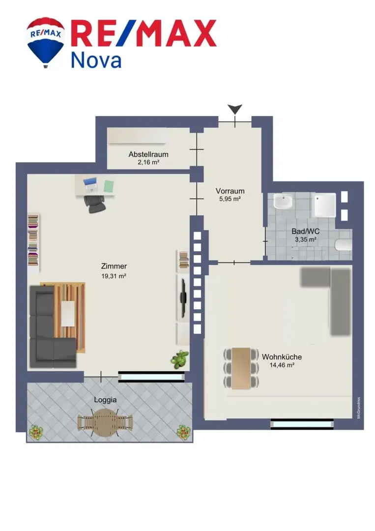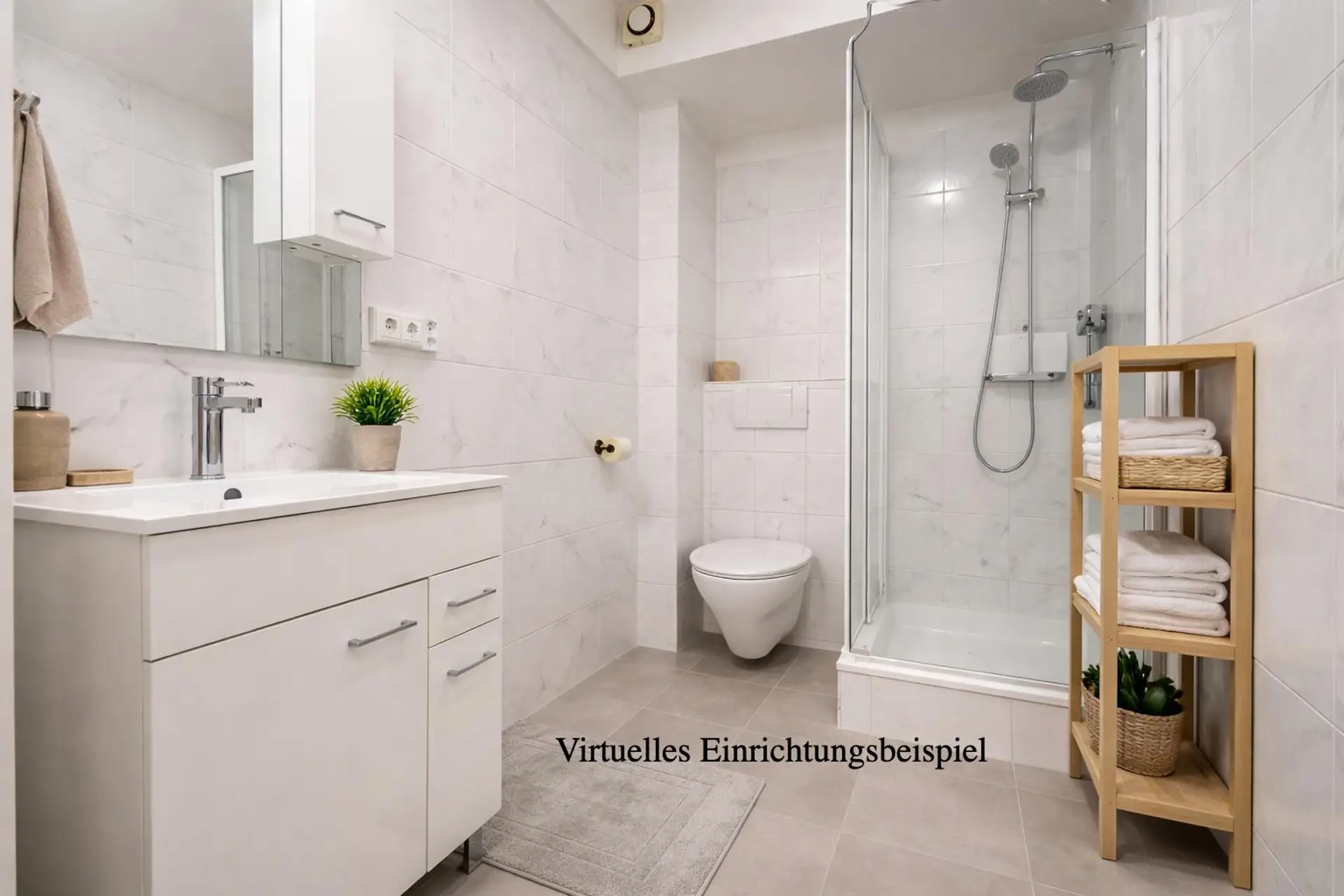 Die Wohnung verfügt über eine großzügige Wohnküche, die ausreichend Platz für Kochen und gemütliches Beisammensein bietet, sowie ein großes Wohnschlafzimmer mit vielseitigen Gestaltungsmöglichkeiten. Ergänzt wird das Raumangebot durch einen praktischen Abstellraum sowie ein Badezimmer mit Dusche und WC.