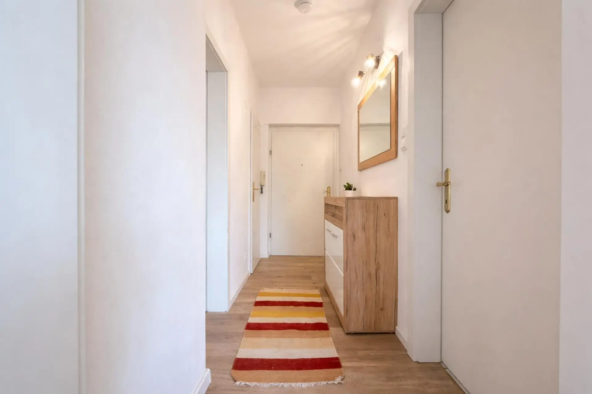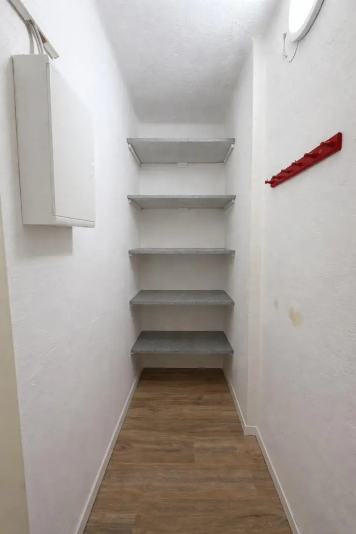 Ein eigenes Kellerabteil bietet zusätzlichen Stauraum. Vor dem Haus stehen in einer ruhigen Sackgasse freie Parkplätze zur Verfügung.