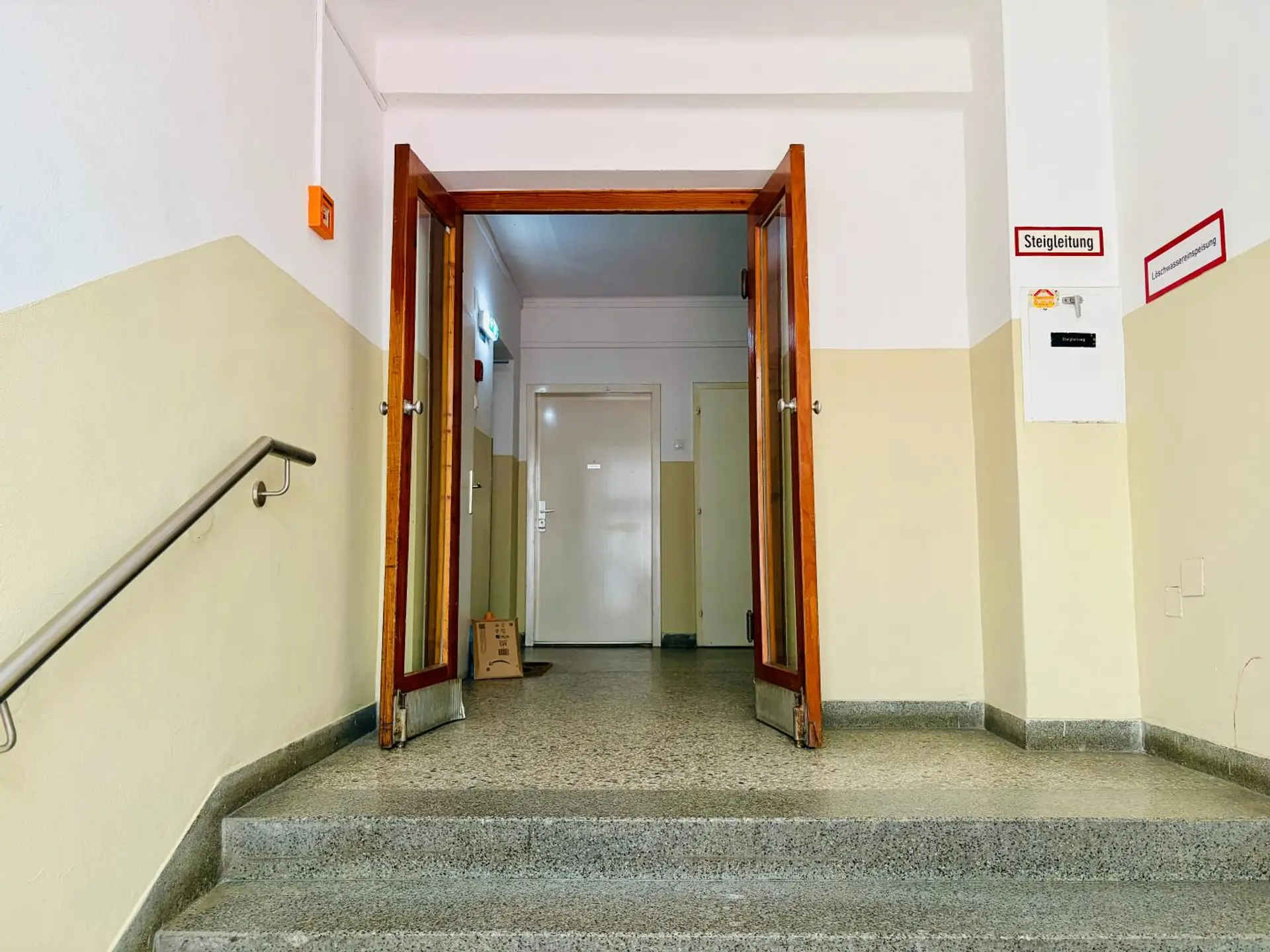 Das Gebäude wird gerade umfassend saniert – Fassade und Vollwärmeschutz ist bereits abgeschlossen – wodurch sowohl die Energieeffizienz als auch das äußere Erscheinungsbild deutlich aufgewertet wurden.