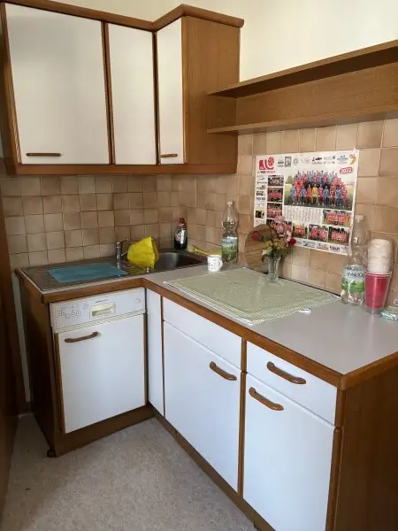 Das Haus besteht aus geräumiger Wohnküche, 1 Schlafzimmer, 1 Bad mit Dusche und Wanne, 1 WC und 1 Vorraum, der auch Ausgang in den Garten, zur Terrasse und zur Gartenhütte ist.