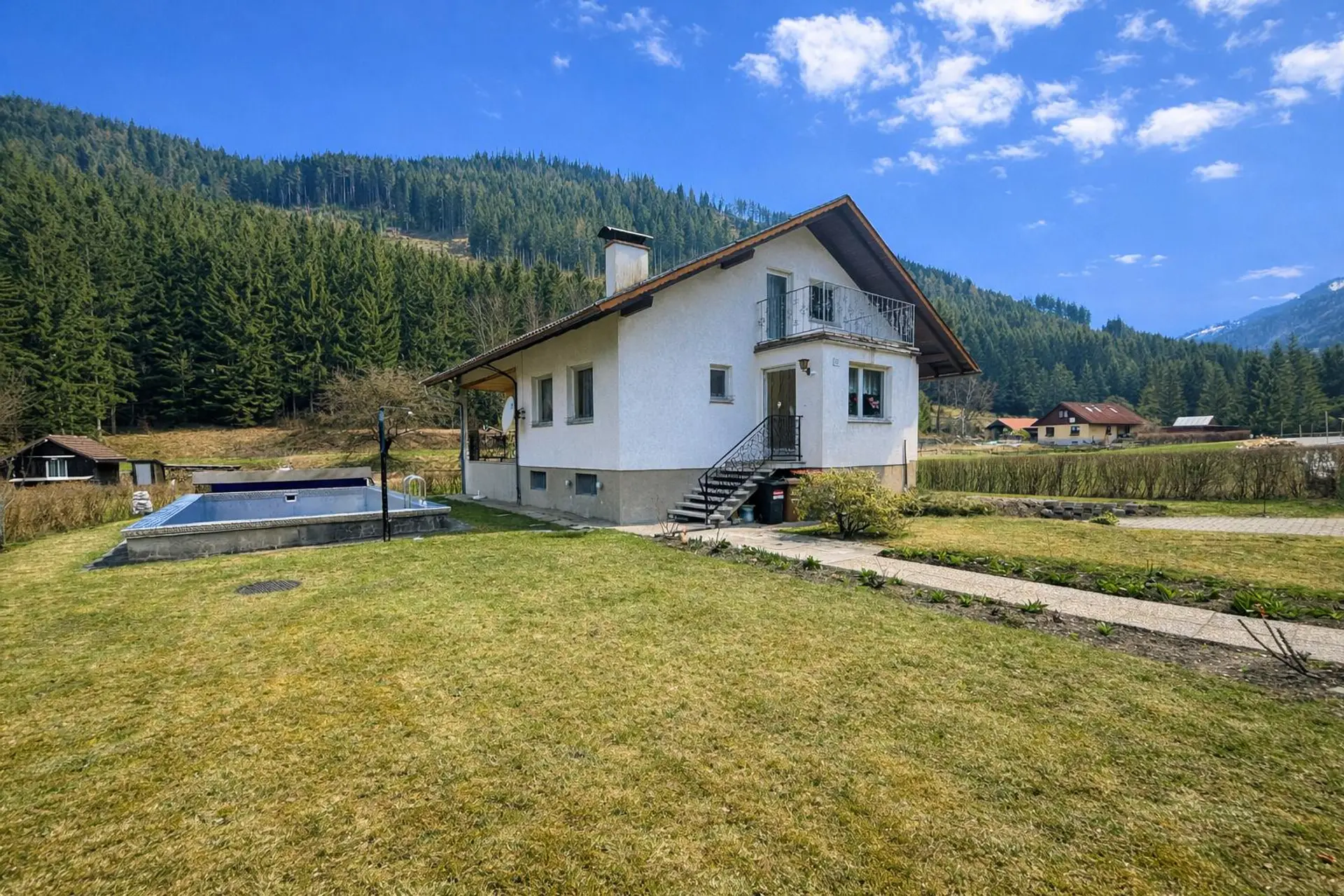 Zum Verkauf steht ein ca. 136 m² großes Einfamilienhaus auf einem rund 602 m² großen, ebenen Grundstück in sonniger und ruhiger Grünlage in Au bei Turnau.
