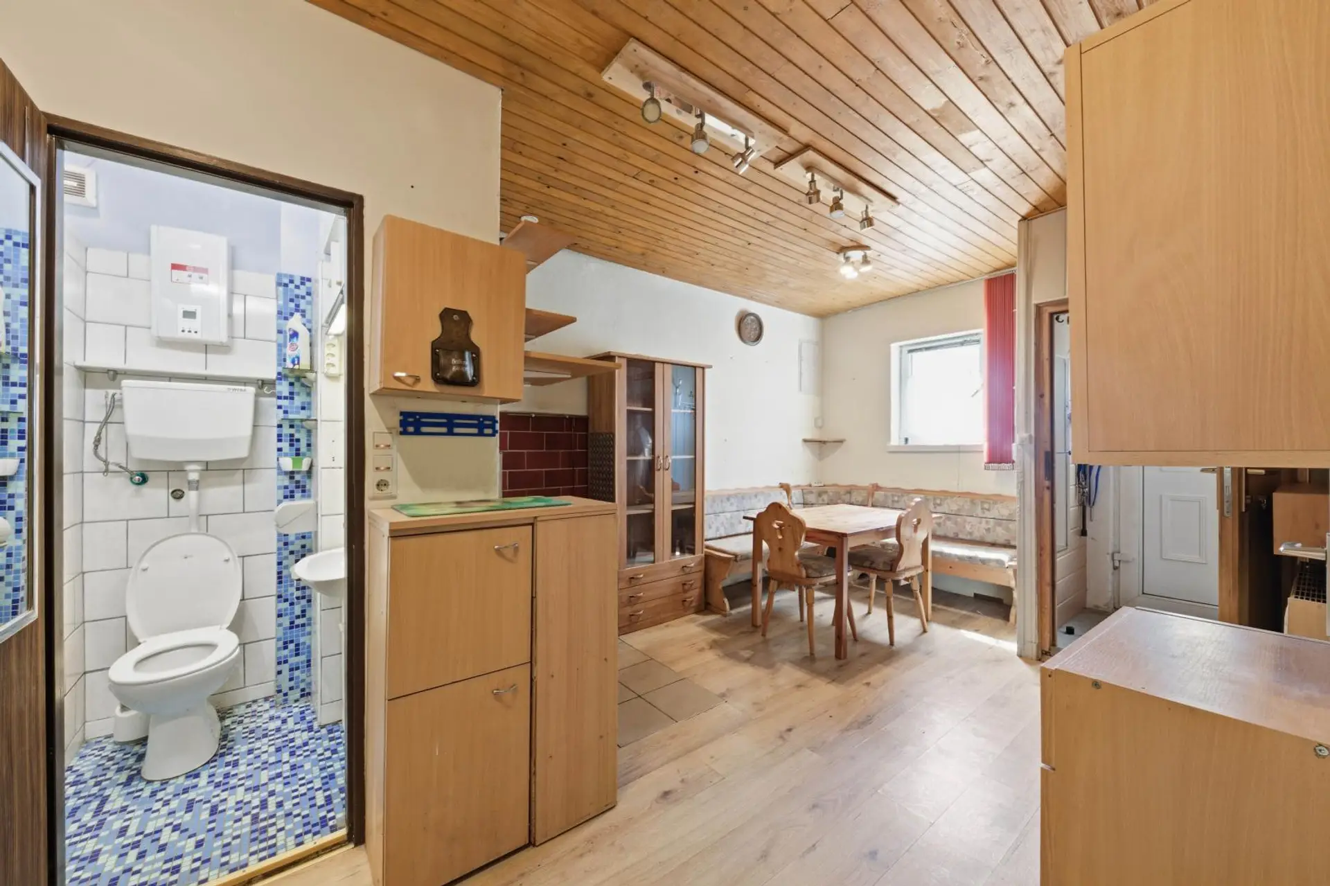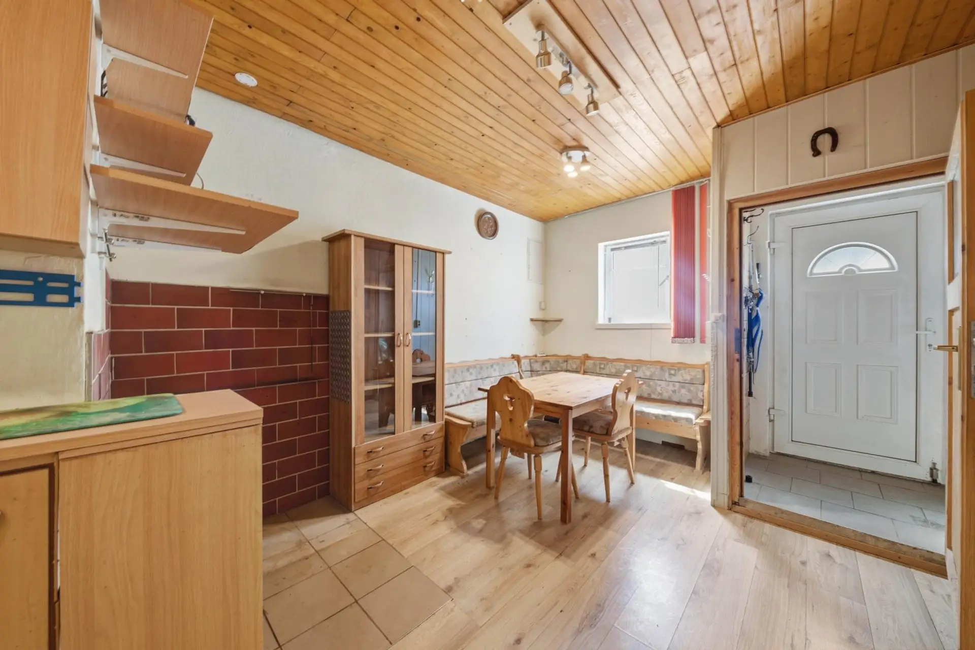 anzupassen. Ebenfalls befindet sich eine Dusche im Objekt sowie die Toilette sowie eine integrierte Garage/Werkstatt.