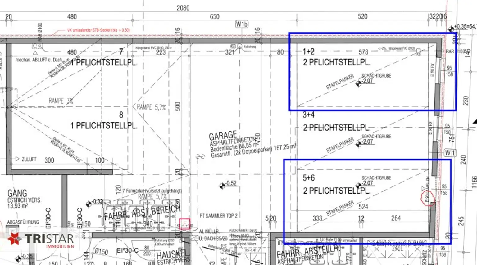 Die Garagenplätze Nr. 2 und Nr. 6 befinden sich im Erdgeschoss eines Neubauhauses in der Hofwiesengasse, sind Stapelparkplätze und verfügen über eine komfortable Zufahrt von der Straße (siehe Fotos).