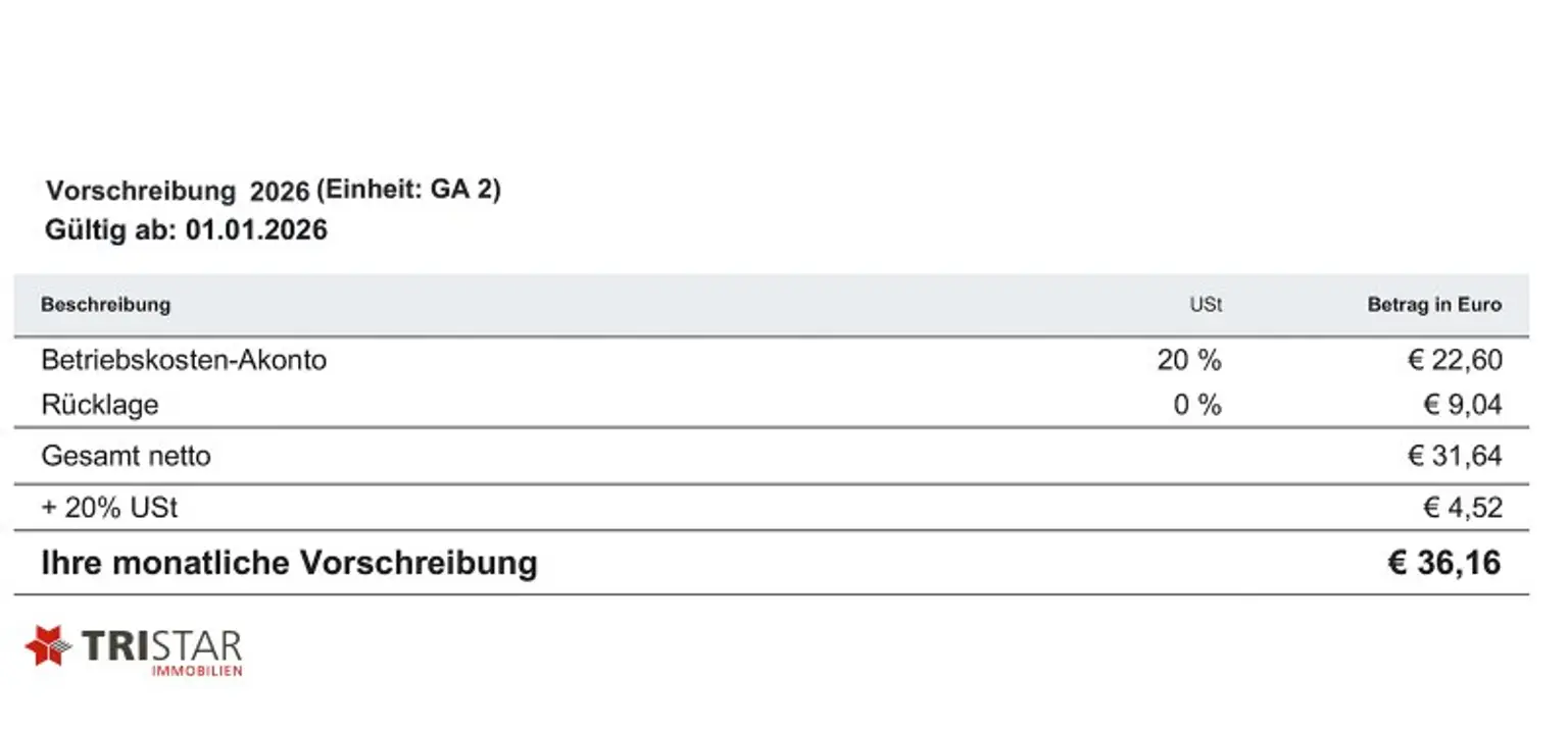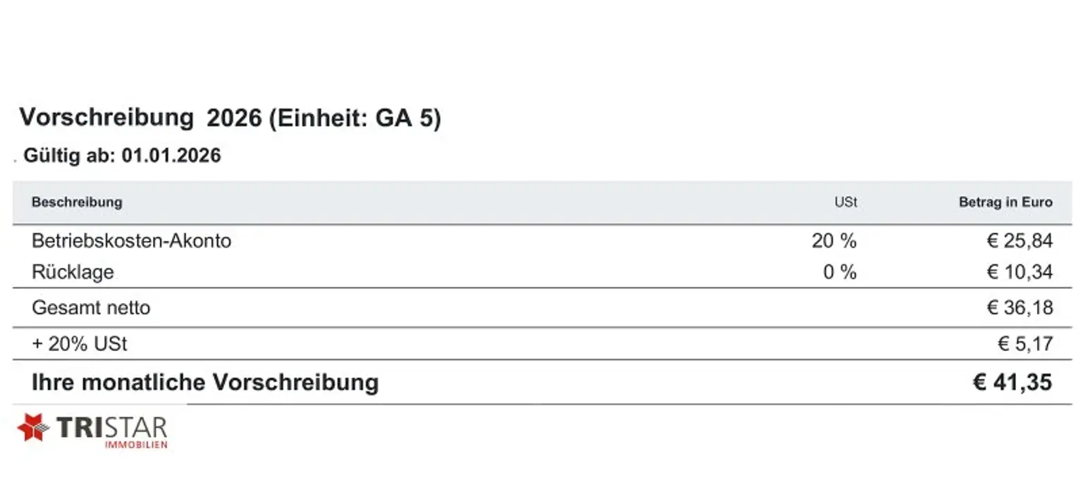 Der Kaufpreis beträgt EUR 25.000 pro Stellplatz (Eigentum, lastenfrei).