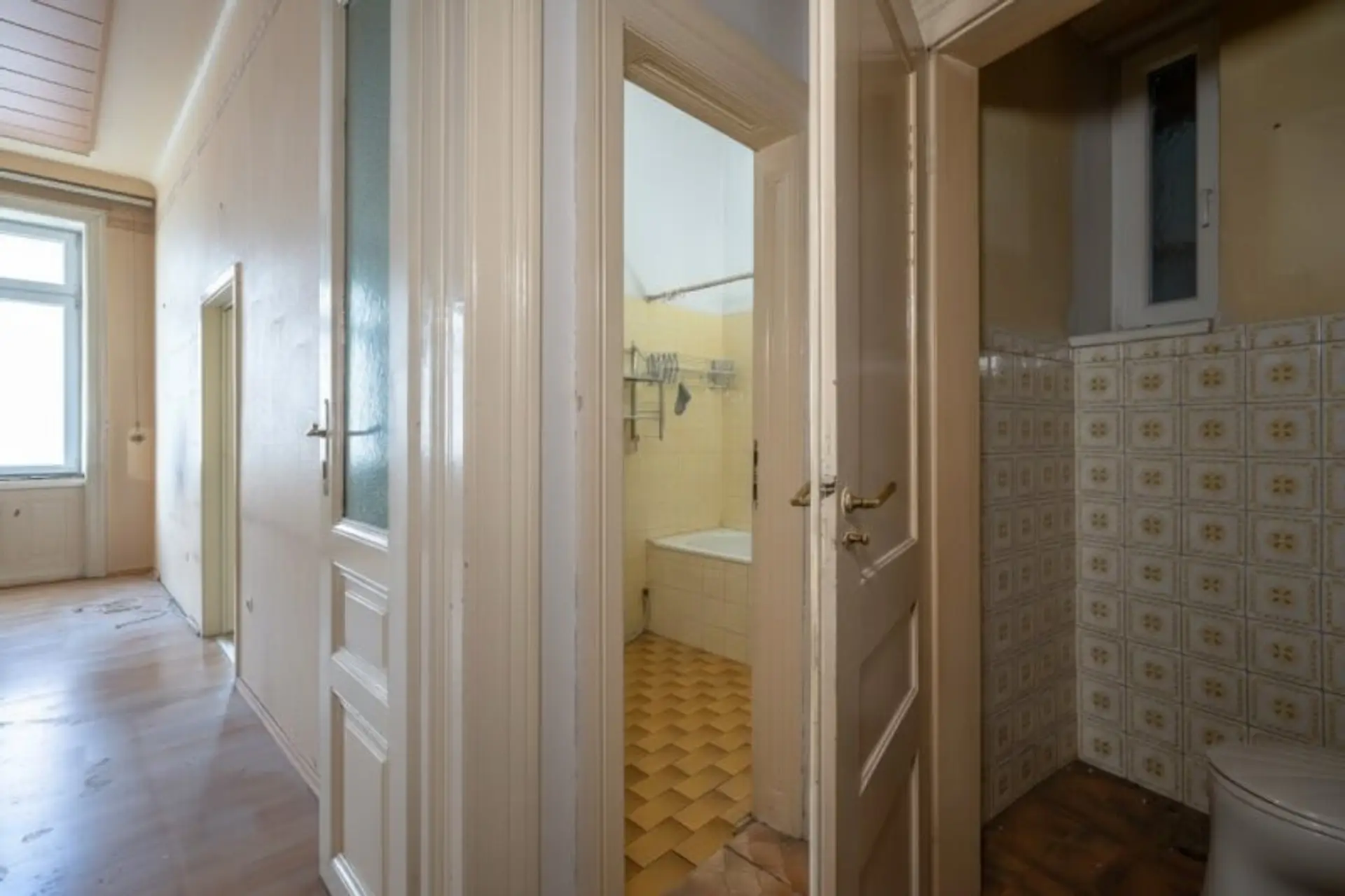 Die Wohnung befindet sich in einem komplett sanierungsbedürftigen Zustand (keine Heizung) und wird wie sie liegt und steht verkauft!